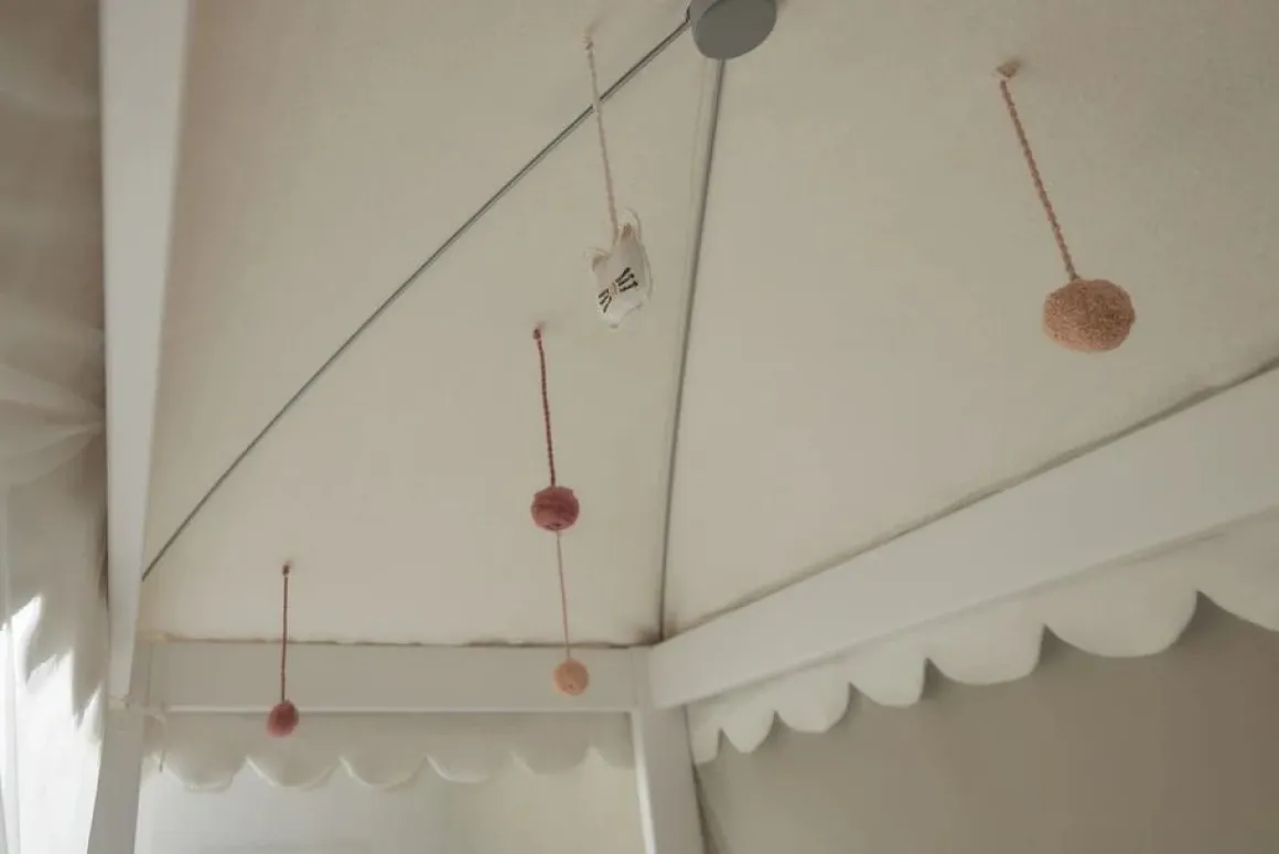 Wat de Cat & Bow hemel bijzonder maakt, zijn de charmante details. De hemel wordt geleverd met een strikvormige top, roze pompons en een speelse kattenhanger die aan de binnenzijde kan worden bevestigd. Deze elementen zorgen voor een unieke uitstraling en geven de kinderkamer een vrolijke en persoonlijke sfeer.