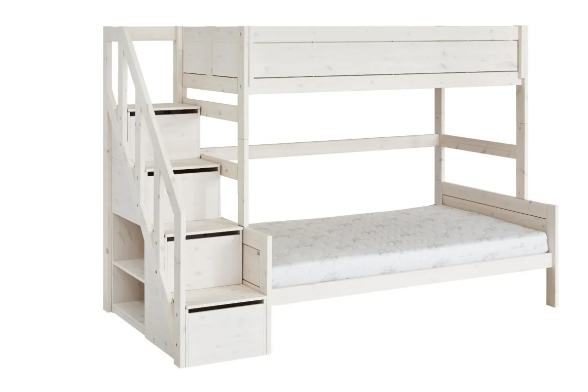 Vindt jouw kleine het geweldig om boven te slapen? Dan is het family stapelbed van Life Time de perfecte keuze! Dit ruime bed heeft een gave trapkast die je kunt gebruiken voor extra opbergruimte. Het stapelbed is verkrijgbaar in de kleuren Wit Gelakt en White Wash