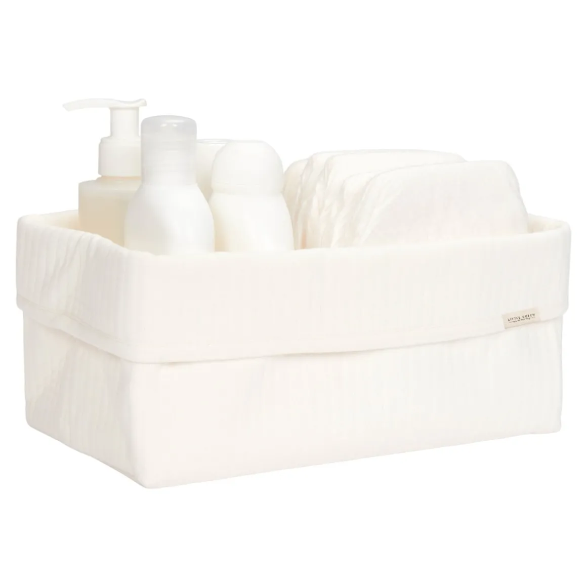 In het Little Dutch Commodemandje Groot Pure Soft White kunnen losse spulletjes worden opgeborgen. Zet het mandje op de commode en stop er wat verzorgingsspulletjes in die je regelmatig gebruikt tijdens het verschonen van je kindje. Zo heb je alles wat je nodig hebt altijd binnen handbereik!