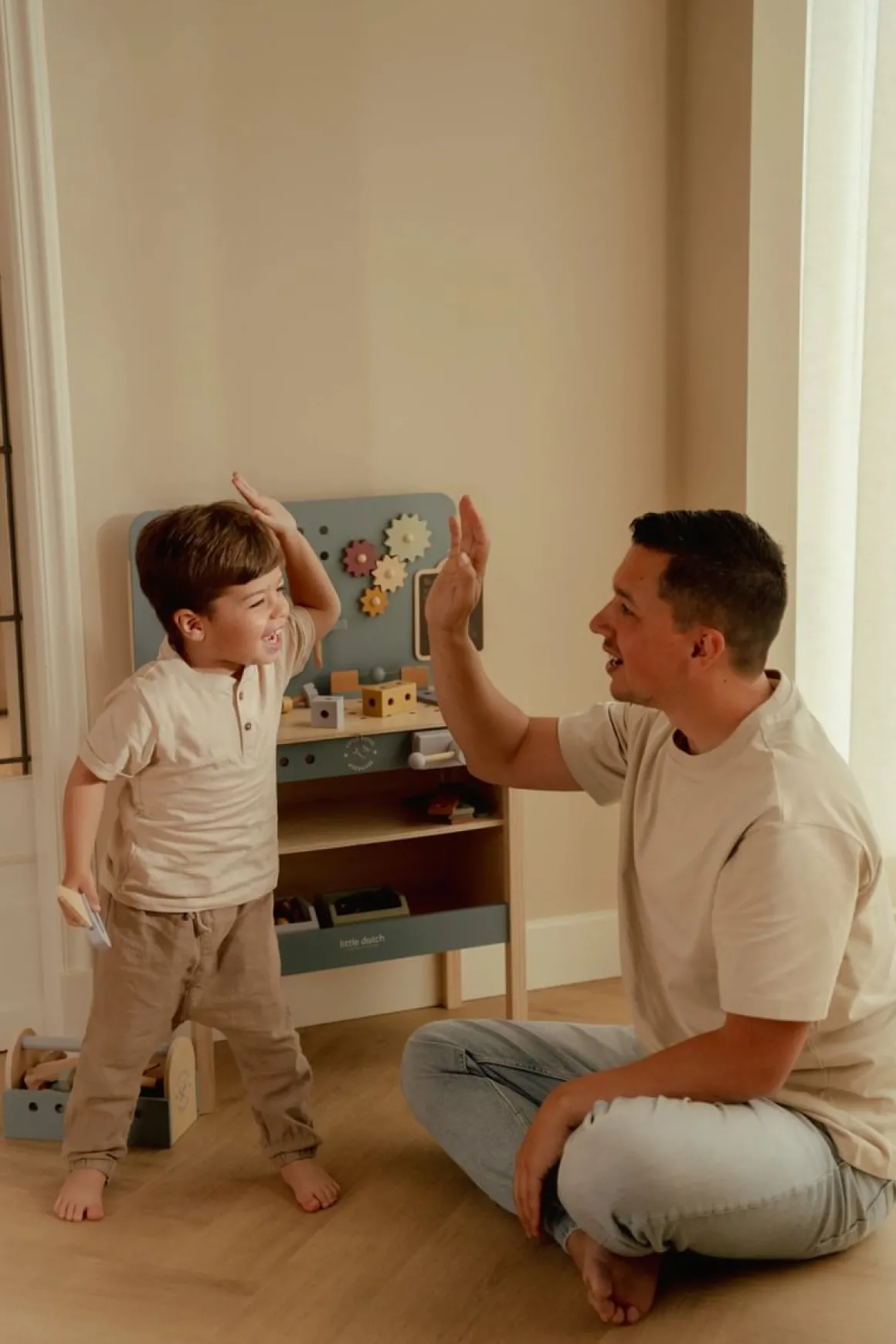 De Little Dutch Gereedschapskist is een leuk stuk speelgoed waarmee kinderen hun eigen bouwprojecten kunnen bedenken. Met de verschillende houten gereedschappen in de kist kunnen ze rollenspellen spelen en zich even echte klussers voelen. De set is speciaal ontworpen voor jonge kinderen, zodat ze veilig en met veel plezier aan de slag kunnen.