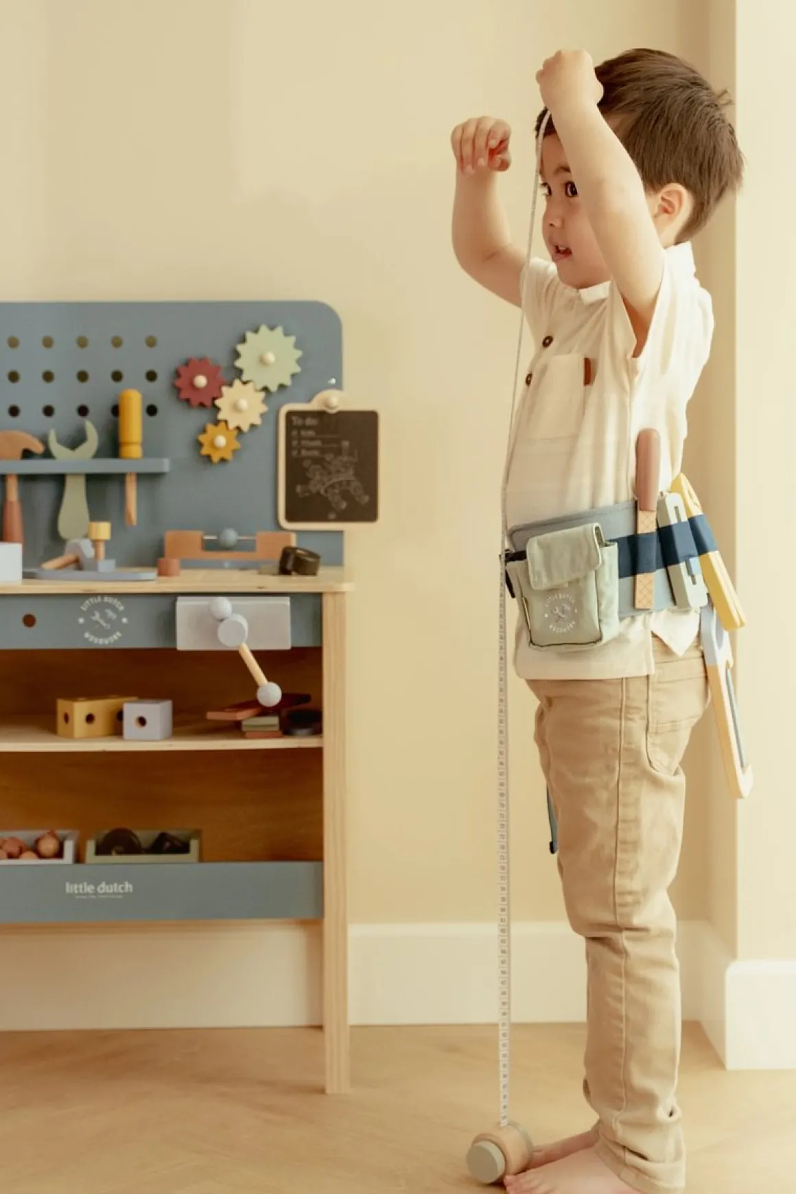 De Little Dutch Gereedschapsriem is een leuk stuk speelgoed waarmee kinderen zich even echte klusjesmannen of -vrouwen voelen. De riem is voorzien van verschillende houten gereedschappen waarmee kinderen rollenspellen kunnen doen en hun fantasie de vrije loop laten. Het is speciaal ontworpen voor jonge kinderen, zodat ze veilig en plezierig kunnen spelen.