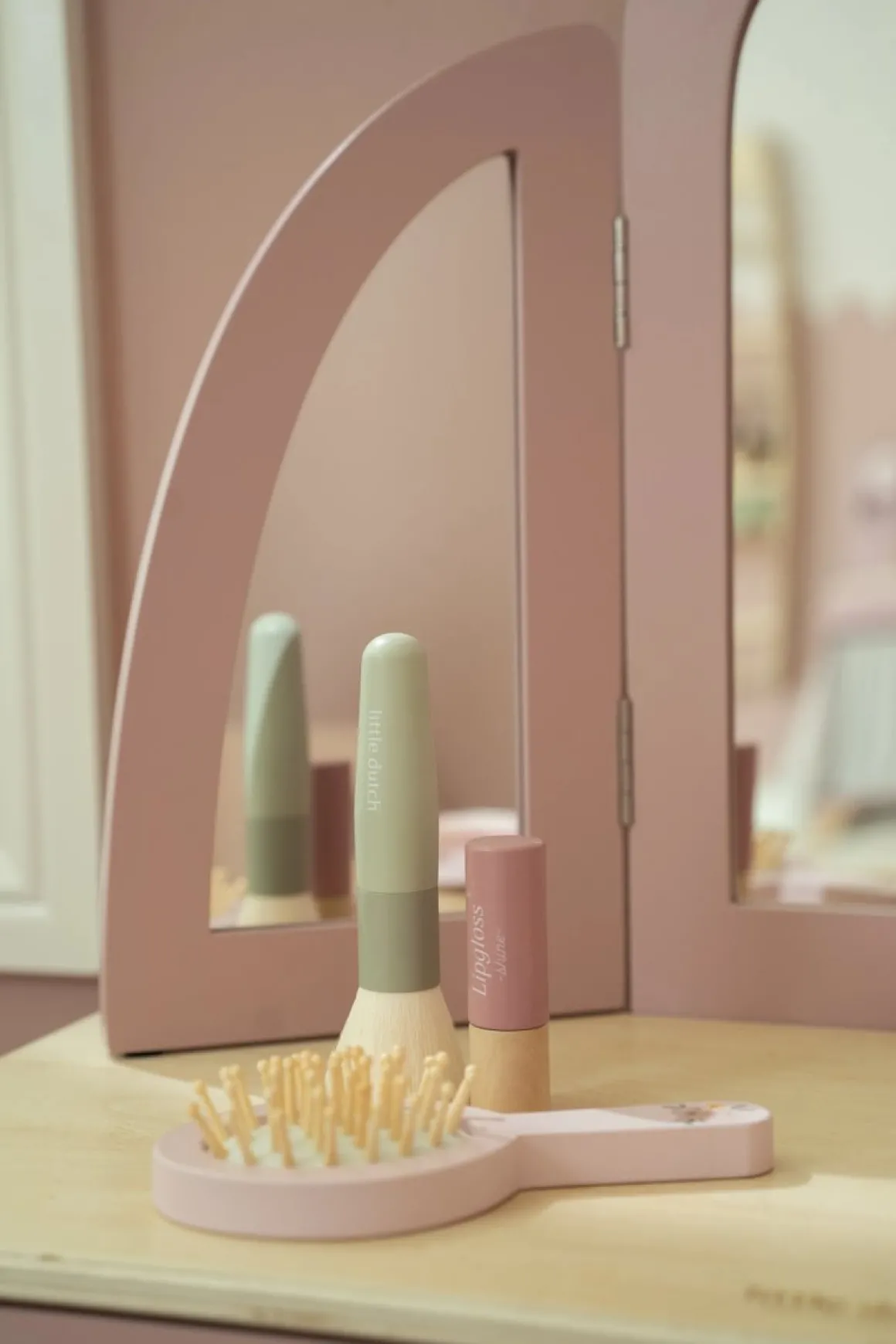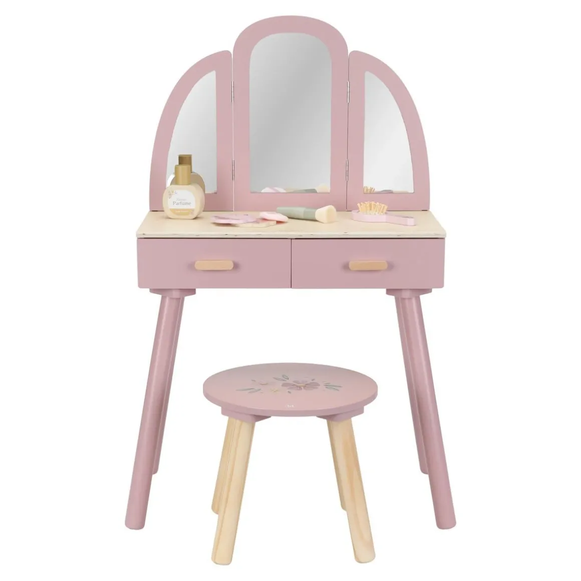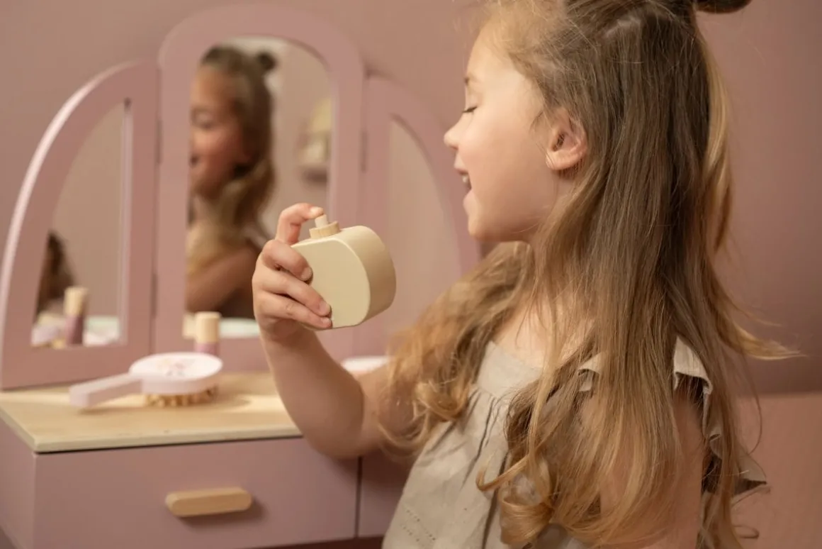 Met de Little Dutch kaptafel krijgen kinderen hun eigen speciale hoekje om zich klaar te maken voor de dag. De houten kaptafel is voorzien van een spiegel en wordt geleverd met verschillende accessoires, zodat er eindeloos kan worden gespeeld met haar, make-up en sieraden.