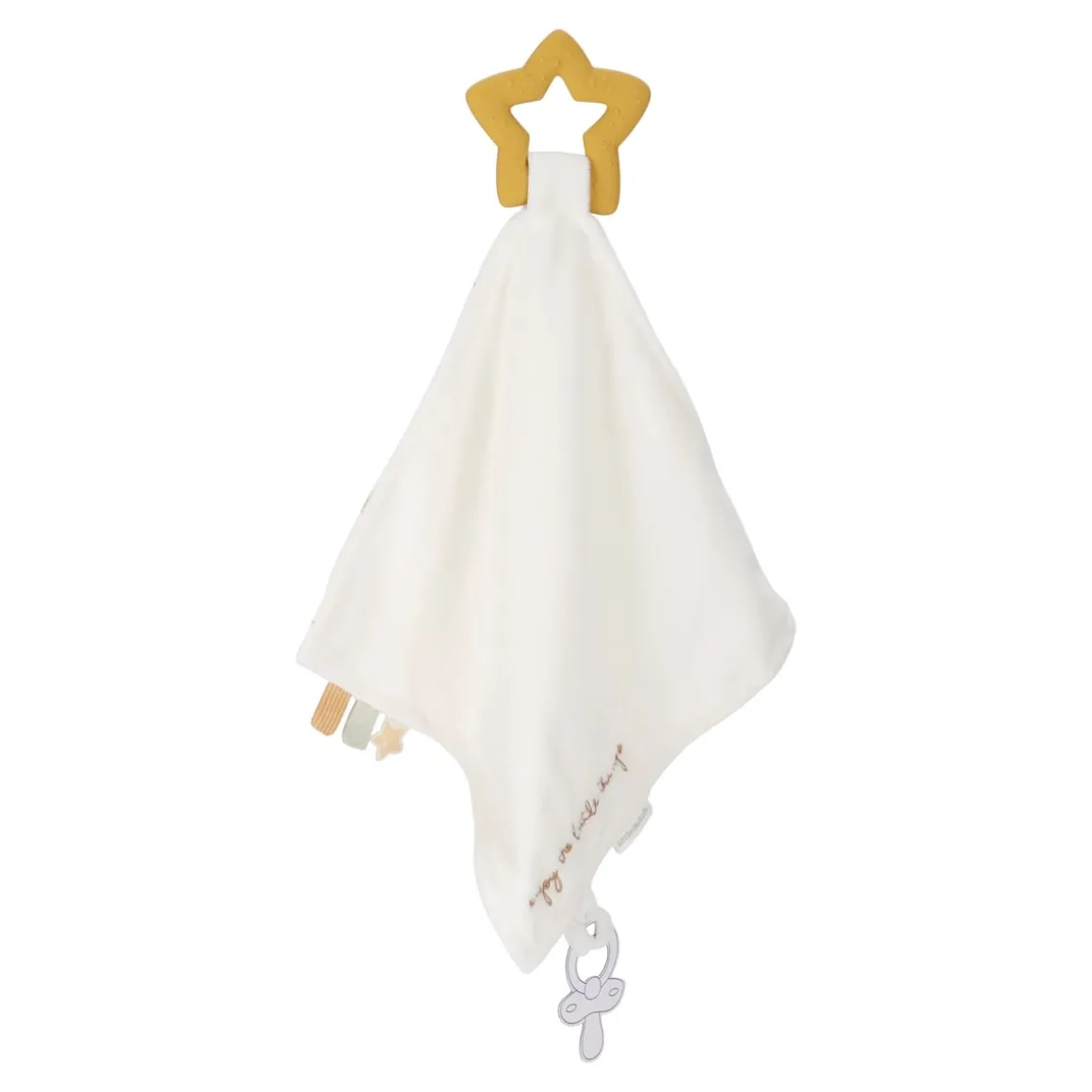 De rustgevende tinten en hoogwaardige stoffen sluiten perfect aan bij de Newborn Naturals collectie. Het doekje is niet alleen praktisch, maar ook stijlvol in iedere babyuitzet. De bijtring is veilig om op te kauwen en vormt samen met het doekje een mooi geheel dat baby’s en ouders zal aanspreken.