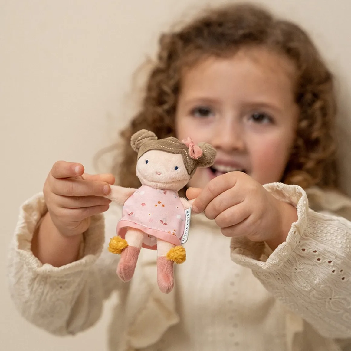 Rosa mag dan wel slechts 10 cm groot zijn, maar haar liefde is groots. Deze kleine knuffelpop is ideaal voor de allerkleinsten om vast te houden, te knuffelen en overal mee naartoe te nemen. Ze is het perfecte formaat voor kleine handjes en biedt troost en gezelligheid waar je ook bent.