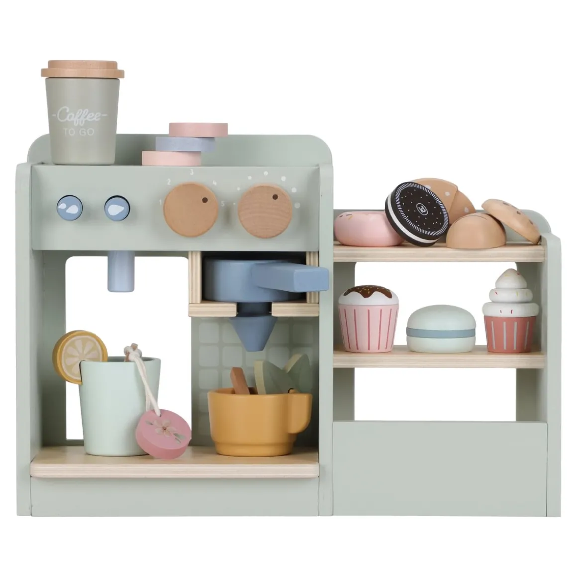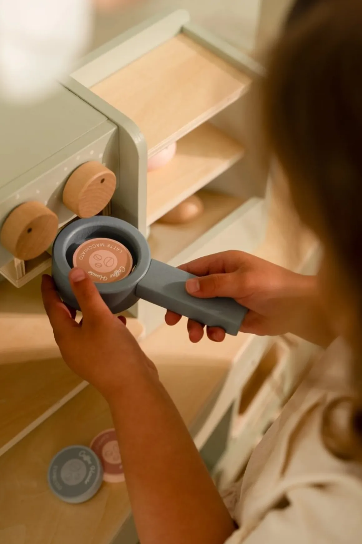 Met de koffiehoek kunnen kinderen kiezen uit verschillende koffiesmaken, melk toevoegen of zelfs een koekje serveren. Dit rollenspel stimuleert creativiteit en sociale interactie, terwijl kinderen spelenderwijs leren over gastvrijheid en service. De set is ideaal te combineren met andere keuken- of winkelaccessoires voor nog meer speelplezier.