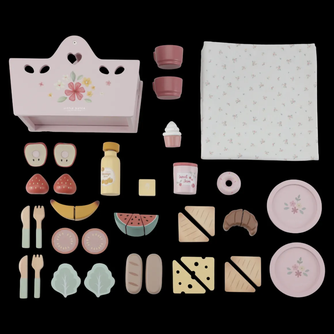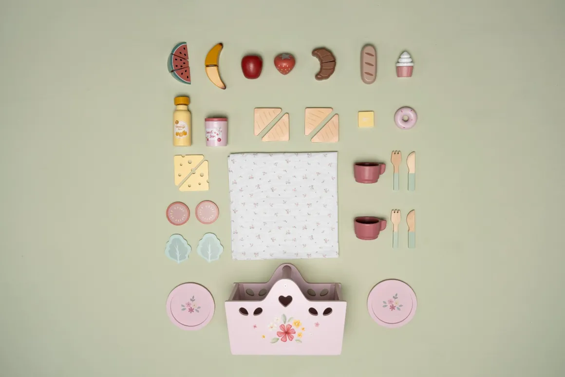 Met de Little Dutch Picknick Speelgoedset beleeft je kleintje eindeloze avonturen. Deze set bevat alles wat nodig is voor een perfecte picknick: fruit, bestek, bordjes, beleg en een schattig picknickmandje. Ideaal voor zowel binnen- als buitenspeelplezier, stimuleert deze uitgebreide set de verbeelding en sociale vaardigheden van je kind terwijl ze hun eigen picknick inrichten en ervan genieten.