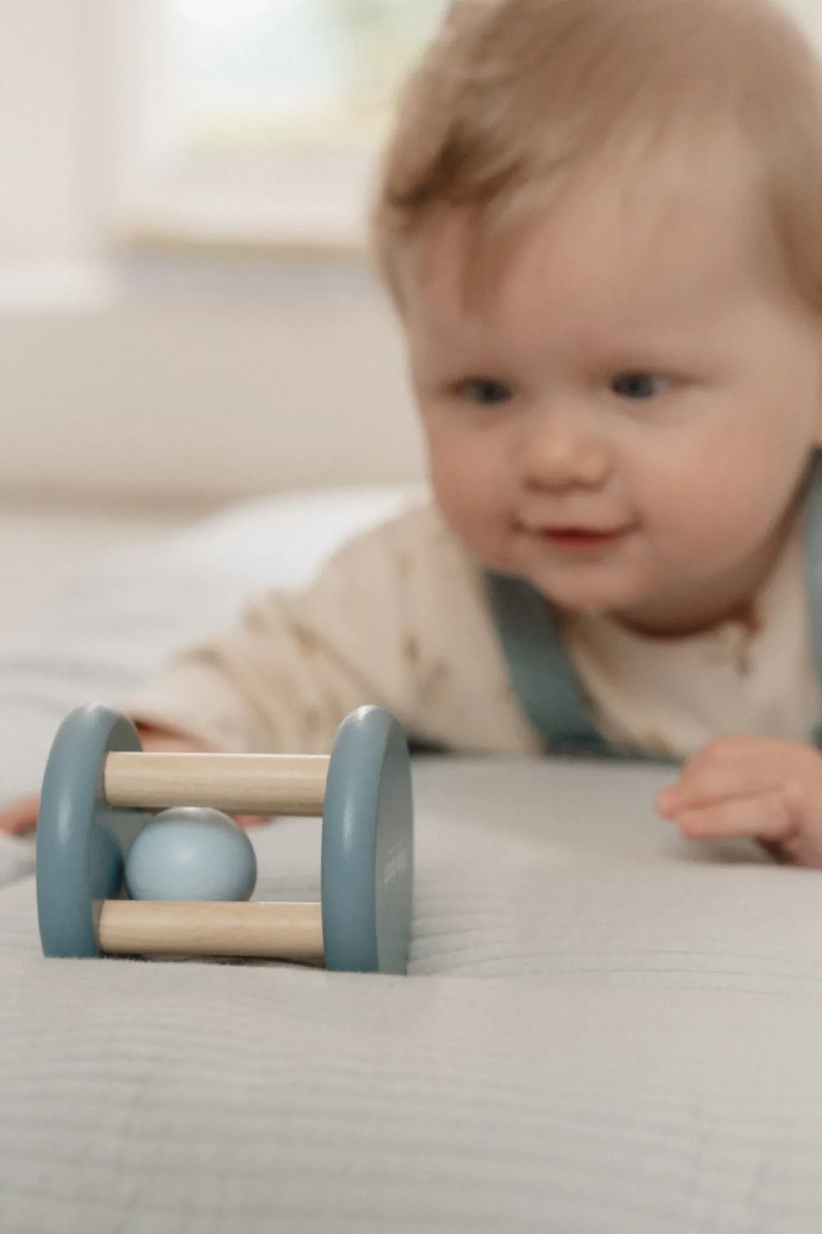 Met zijn rollende beweging en het aangename geluid stimuleert de rammelaar de hand-oog coördinatie van jouw kleintje. Terwijl ze het speeltje volgen en vastgrijpen, ontwikkelen ze essentiële motorische vaardigheden.