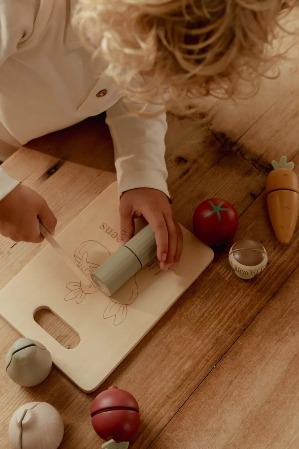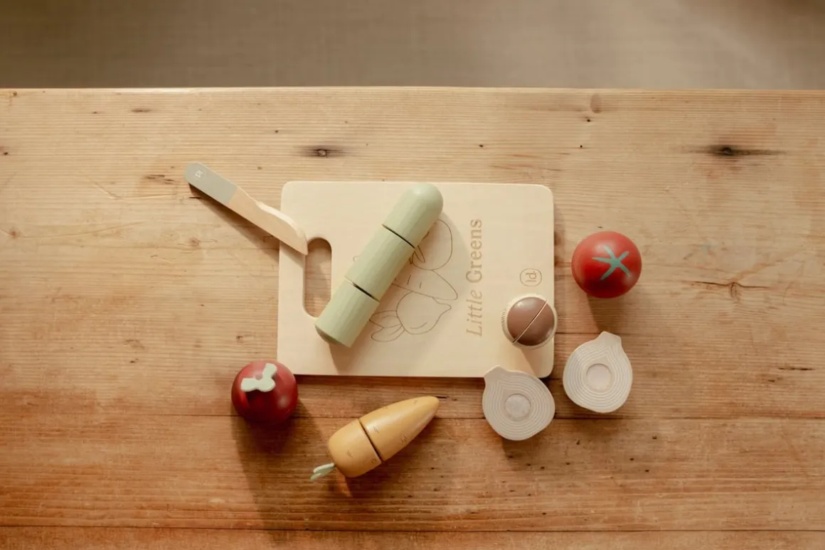 - Houten snijgroente set met klittenband, snijplank en houten mesje