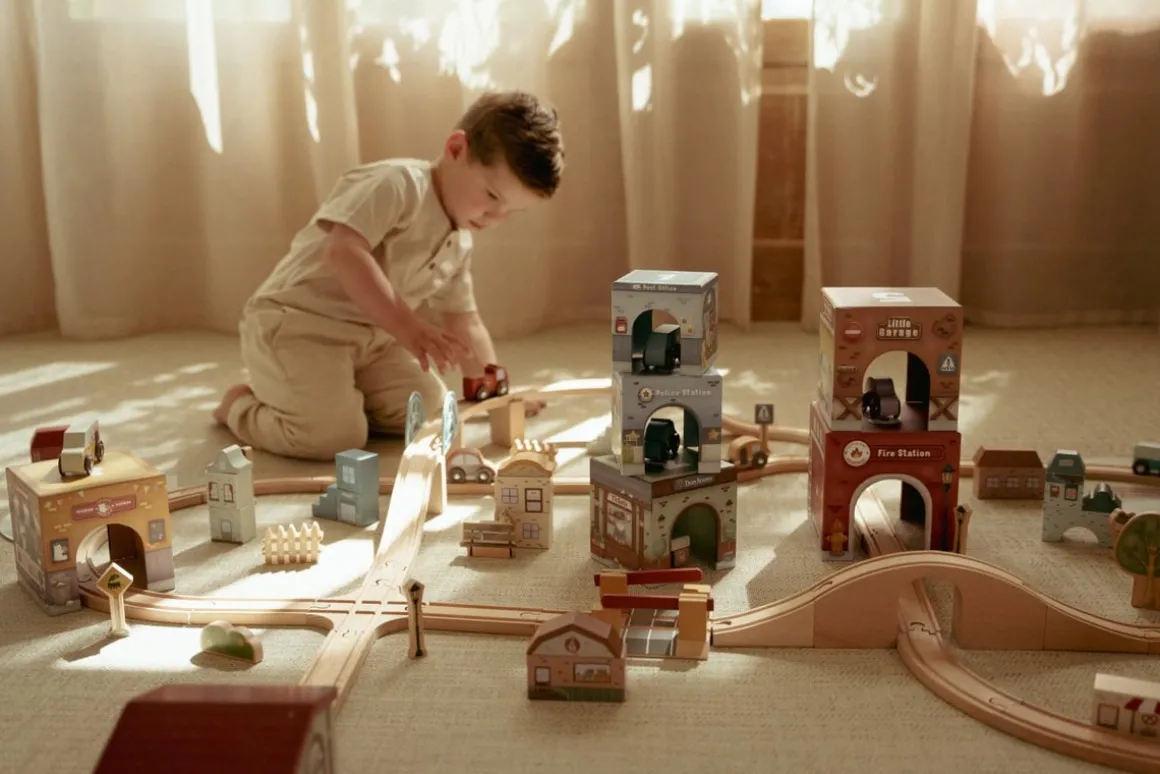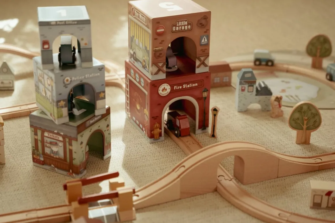 - Speelgoed voor kinderen dat stapelen en spelen met auto’s combineert