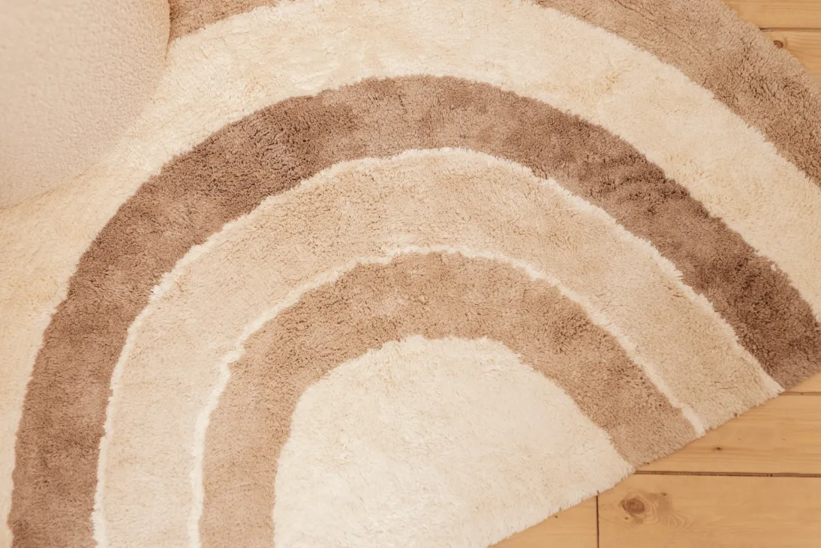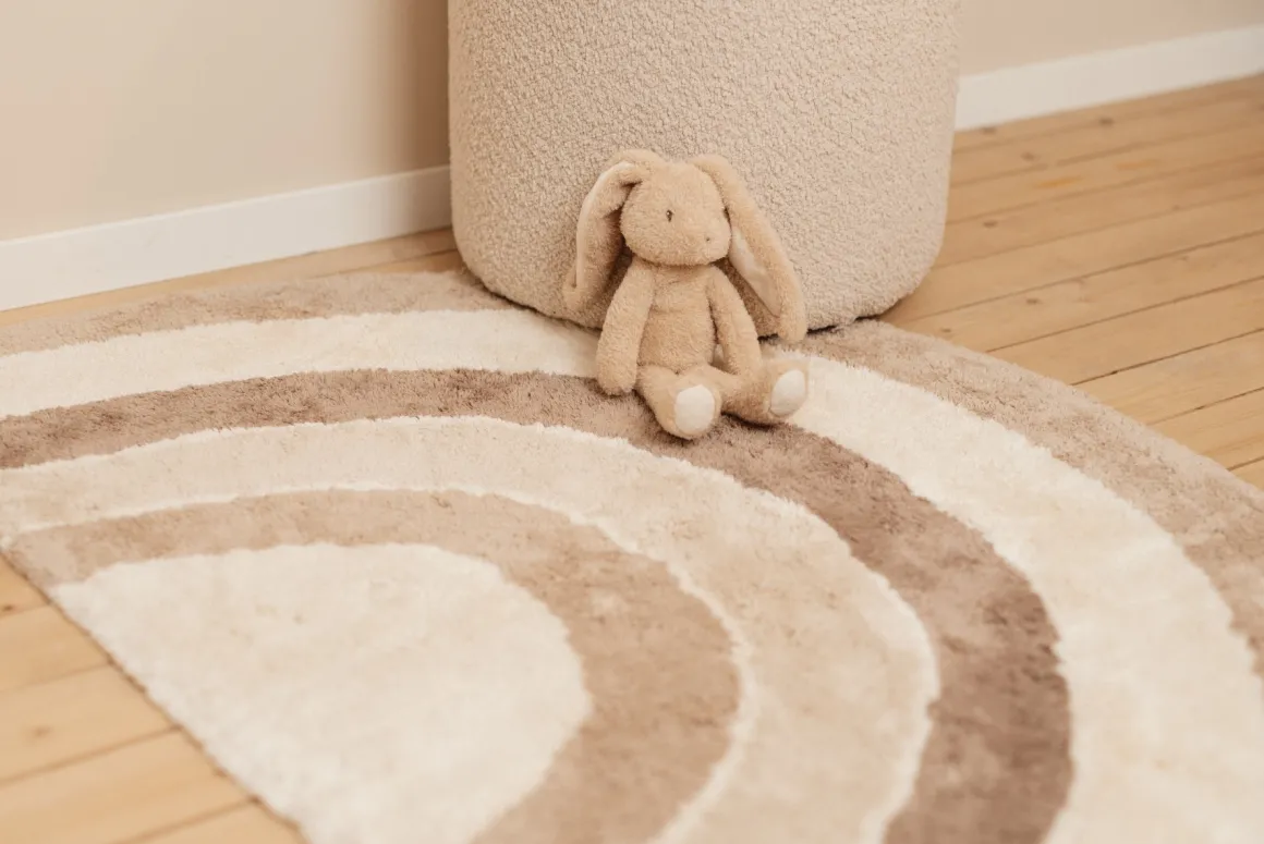 Het Little Dutch Vloerkleed Regenboog Naturel brengt een warme en uitnodigende sfeer in de kinderkamer. Met een zachte beige basiskleur en subtiele tinten van beige en bruin, heeft het kleed een natuurlijke uitstraling die rust en gezelligheid uitstraalt. Het speelse regenboogontwerp maakt het een charmante toevoeging aan elke ruimte en creëert een plek waar kinderen zich thuis voelen.