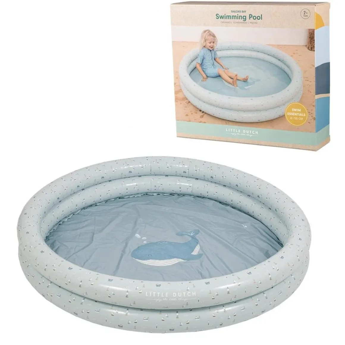 Laat je kleintje tijdens warme dagen plonsen in stijl met het Little Dutch Zwembad Sailors Bay 150 cm! Dit opblaasbare zwembadje, versierd met het vrolijke Sailors Bay thema, is perfect voor zomerse dagen.