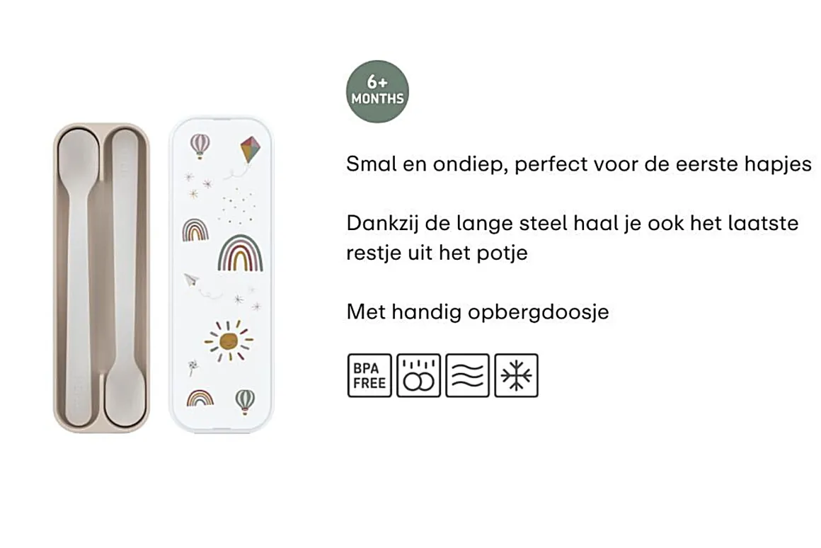 De Mepal Set Babylepel Mio wordt geleverd met een handig opbergdoosje, waardoor je de lepels gemakkelijk kunt meenemen, waar je ook naartoe gaat. Of je nu thuis bent, op bezoek bij familie, of onderweg, de babylepels blijven schoon en hygiënisch opgeborgen. Bovendien heeft elke lepel een lange steel, wat ervoor zorgt dat je zelfs de laatste restjes uit een potje babyvoeding kunt halen. Dit praktische ontwerp helpt verspilling te voorkomen en zorgt ervoor dat je kleintje niets van de voeding hoeft te missen.