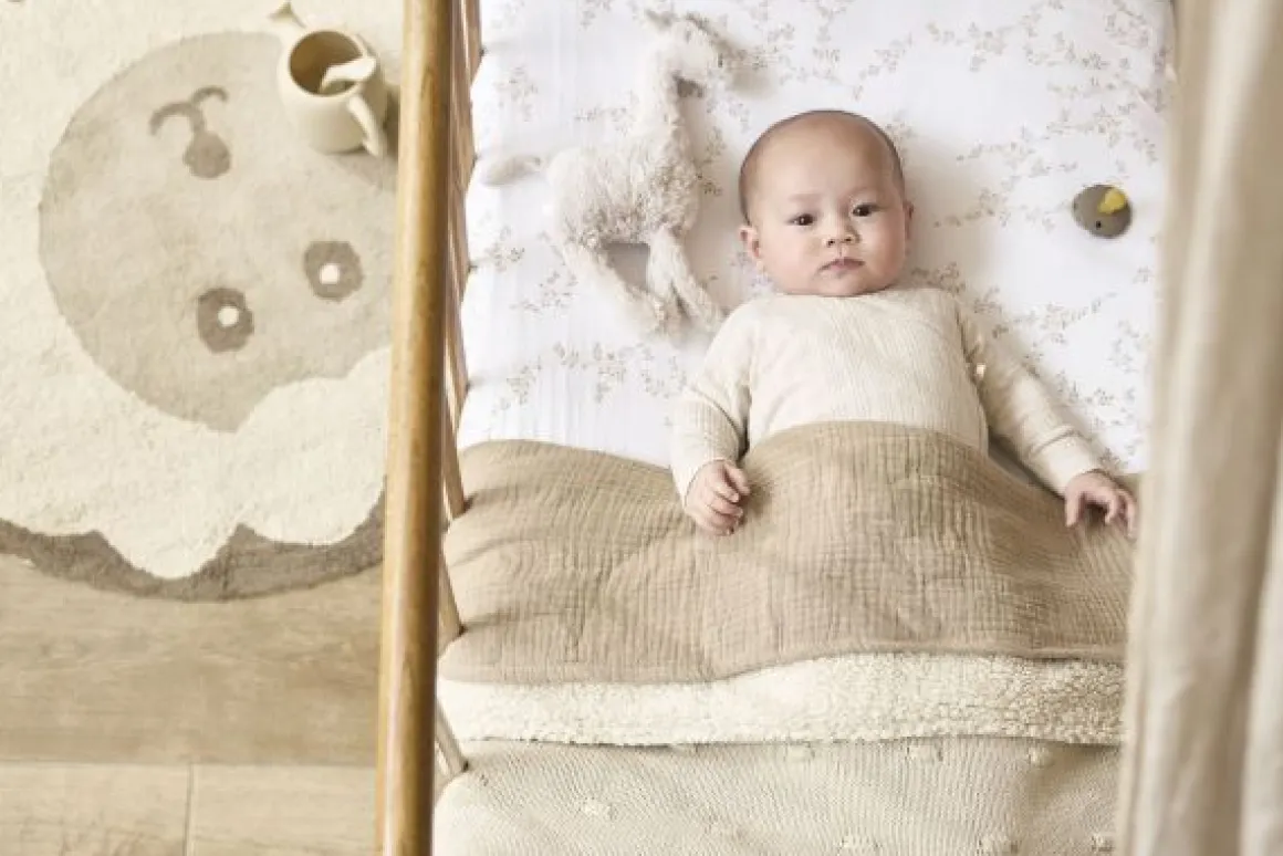 Gebruik het Meyco Baby Knots Ledikant Deken in combinatie met een laken om het wassen van de deken te verminderen. Dit lakentje heeft een TOG-waarde van 2.0, wat aangeeft dat het een lichte isolatie biedt. Hoe hoger de TOG-waarde, hoe warmer het product voor jouw kleintje.