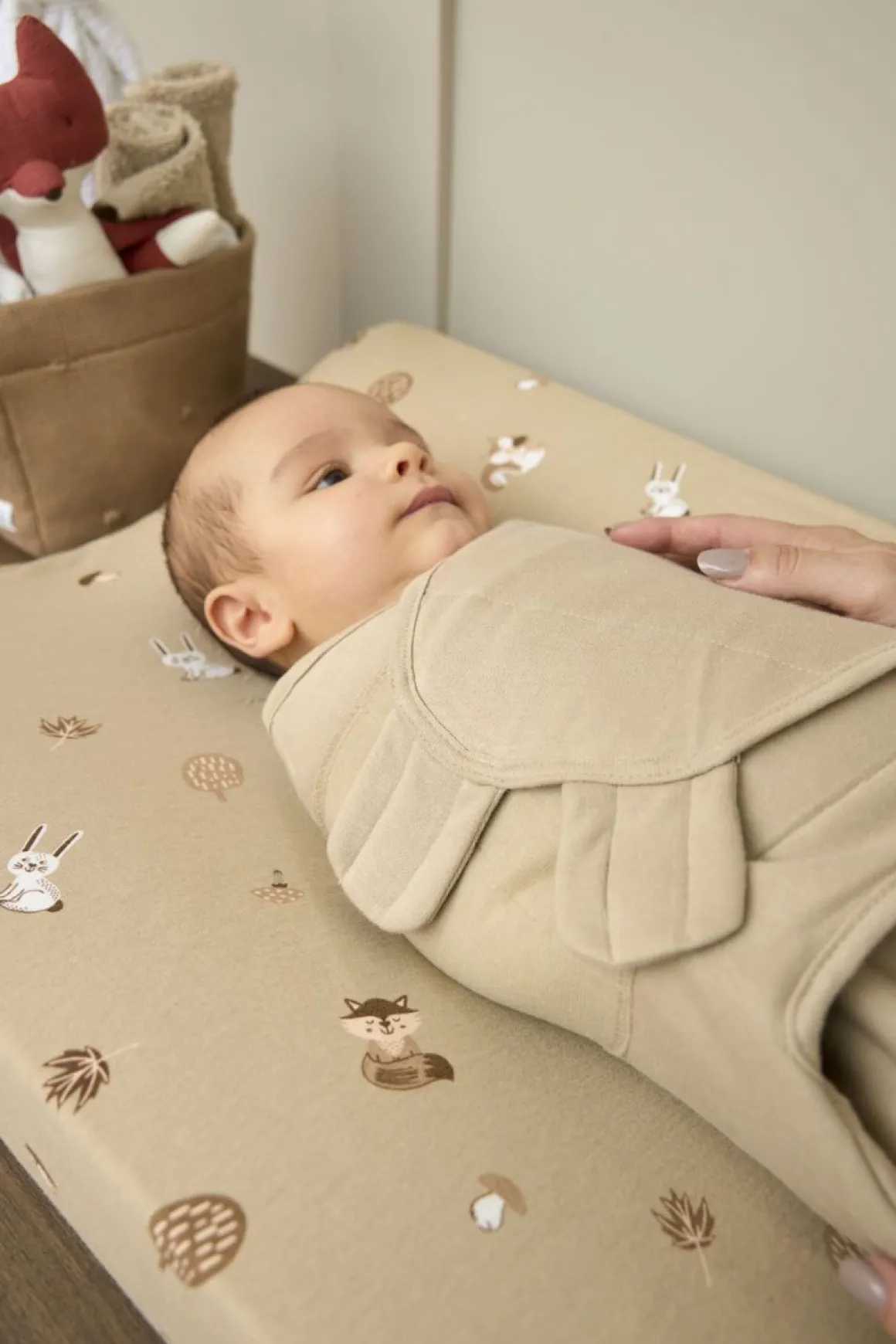 De SwaddleMeyco is gemaakt van 100% katoen, wat zorgt voor een heerlijk zacht gevoel op de huid van je baby. Daarnaast biedt katoen goede ventilatie en absorbeert het vocht, wat belangrijk is voor een comfortabele en gezonde slaapomgeving. De natuurlijke print van de inbakerdoek is gemakkelijk te combineren met andere items uit de Meyco Baby collectie, zodat het perfect past bij de rest van de babyuitzet.