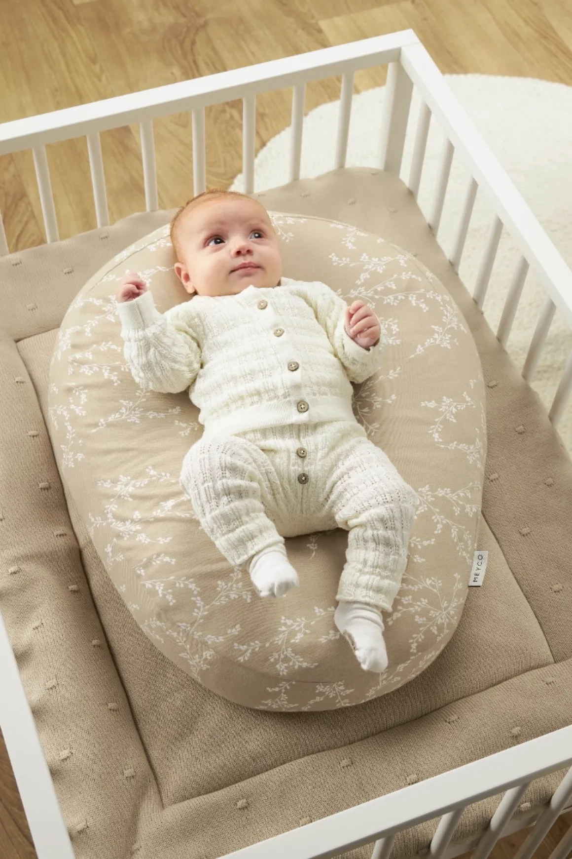De Meyco Relaxhoes maakt voor een fijn babynestje wat de perfecte oplossing is voor snelle dutjes en korte rustmomenten. Je kunt het gebruiken in de box, het ledikant of gewoon op de grond. Het babynestje creƫert het gevoel van geborgenheid dat jouw baby gewend was in de baarmoeder, waardoor je kindje rustig en ontspannen wordt.