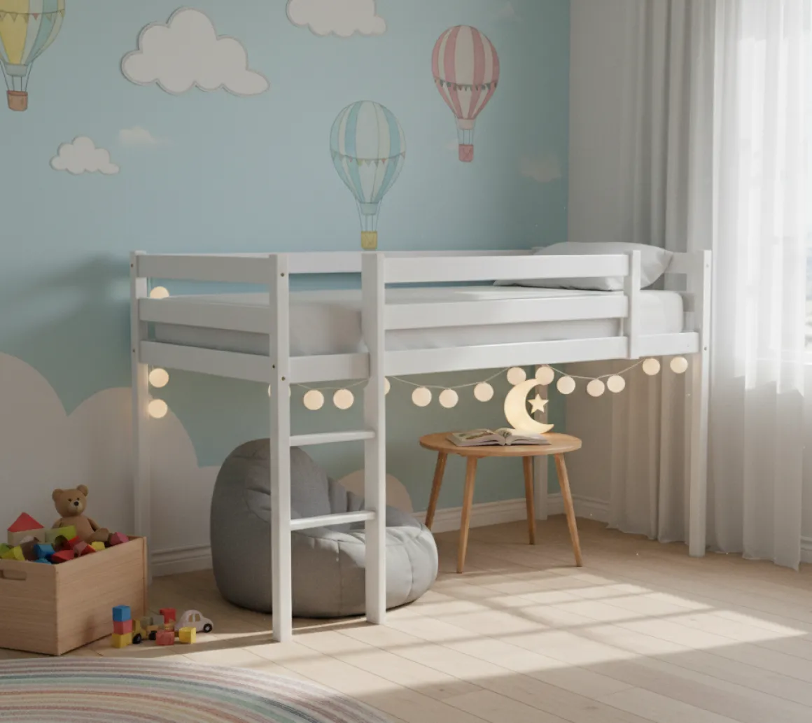 - Ruimtebesparende halfhoogslaper met speel- of opbergruimte onder het bed