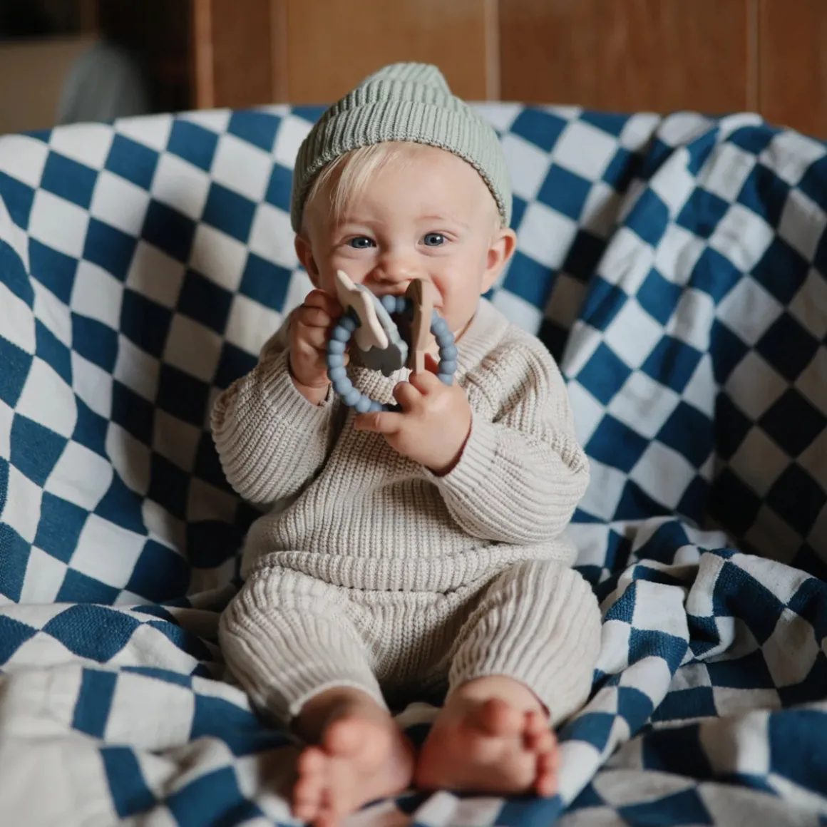 Onze Mushie Bijtring is vervaardigd volgens de hoogste veiligheidsnormen. Hij is 100% vrij van schadelijke stoffen zoals BPA, BPS, PVC en ftalaten, waardoor je met een gerust hart je kleintje kunt laten spelen en kauwen.