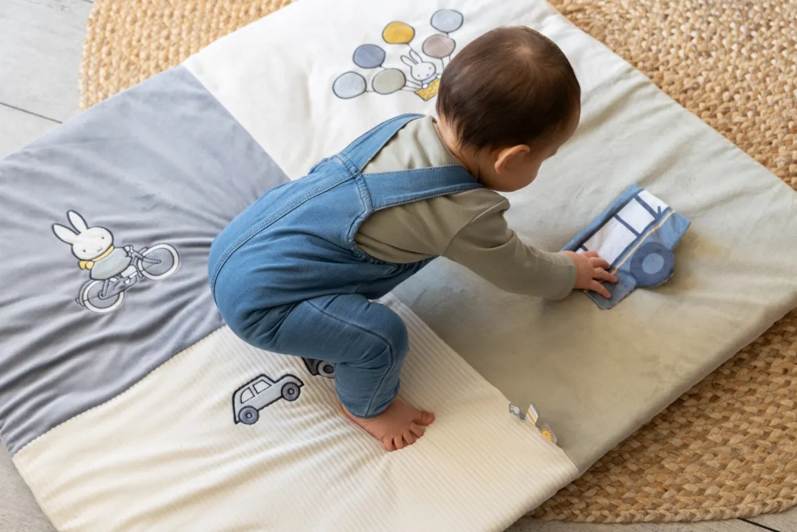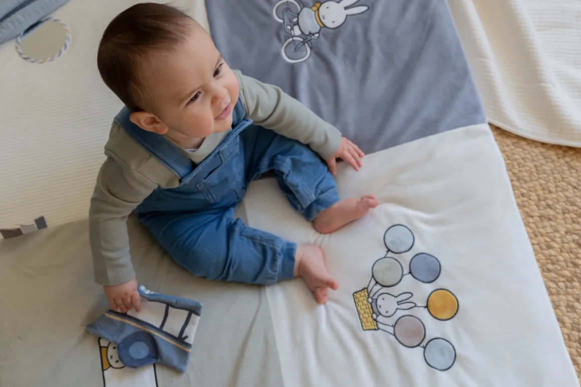 Het Nijntje Boxkleed Fluffy blue is het ideale kleed voor in de box of als speelkleed op de grond. Aan het kleed zitten verschillende labels om aan te voelen, ook is er een spiegeltje en wat knisperpapier. Er zijn genoeg activiteiten voor jouw kleintje. Het Nijntje Boxkleed prikkelt de zintuigen van je kindje enorm.