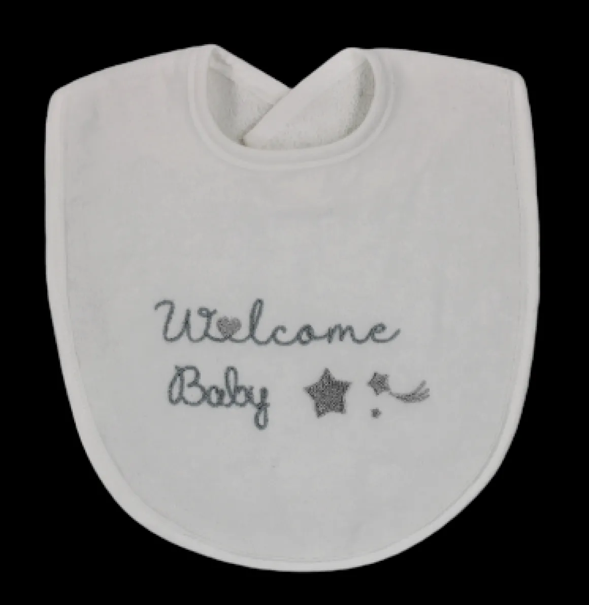 Met deze leuke slab is jouw kleintje dubbel zo welkom! De slab neemt gemakkelijk vocht op en voorkomt zo dat alles op de kleertjes van je kleintje valt.