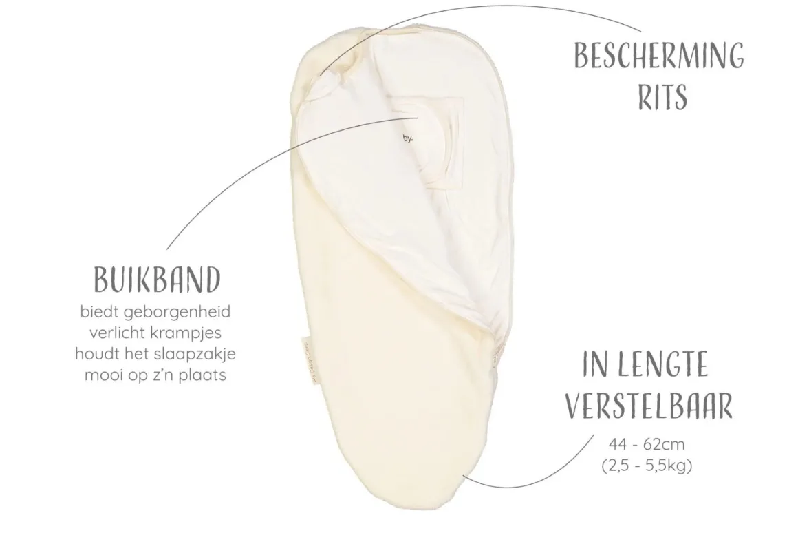 De gebruikte ademende stof zorgt ervoor dat overtollige warmte wordt afgevoerd, terwijl tegelijkertijd een aangename temperatuur behouden blijft. Hierdoor slaapt je baby comfortabel, zonder het risico van oververhitting.