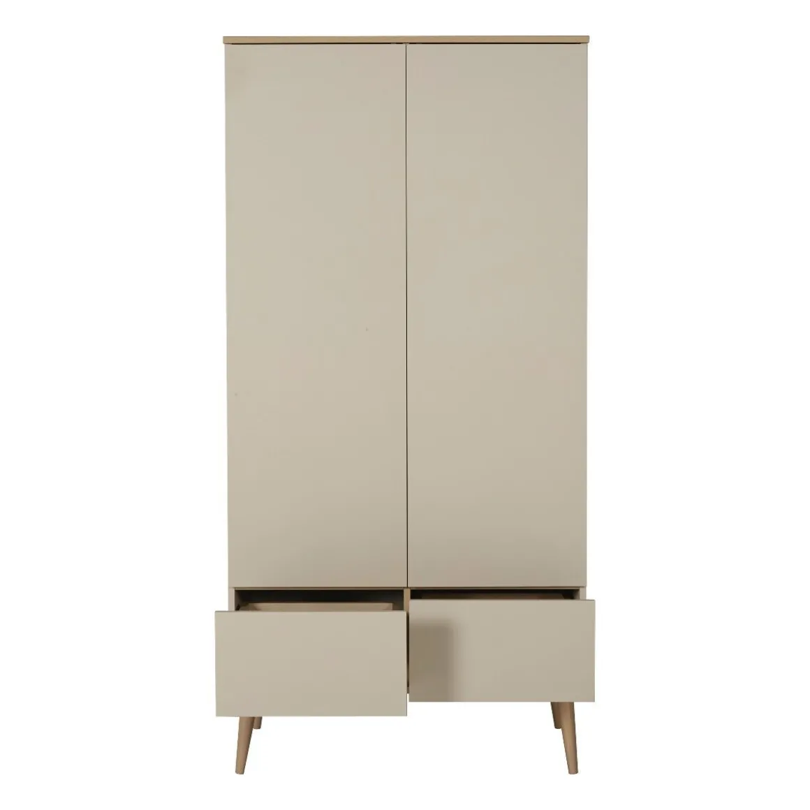 De Quax babykamer Flow Clay & Oak heeft een prachtige grijs/beige kleur. De combinatie met de beukenhouten pootjes zorgen voor een natuurlijke, warme en rustigevende uitstraling.