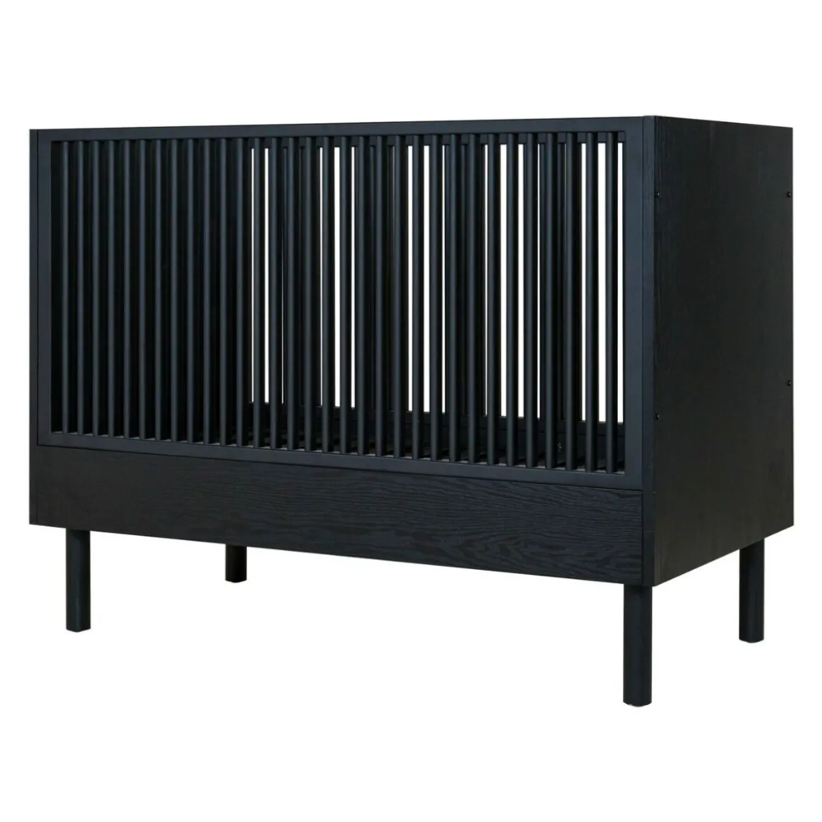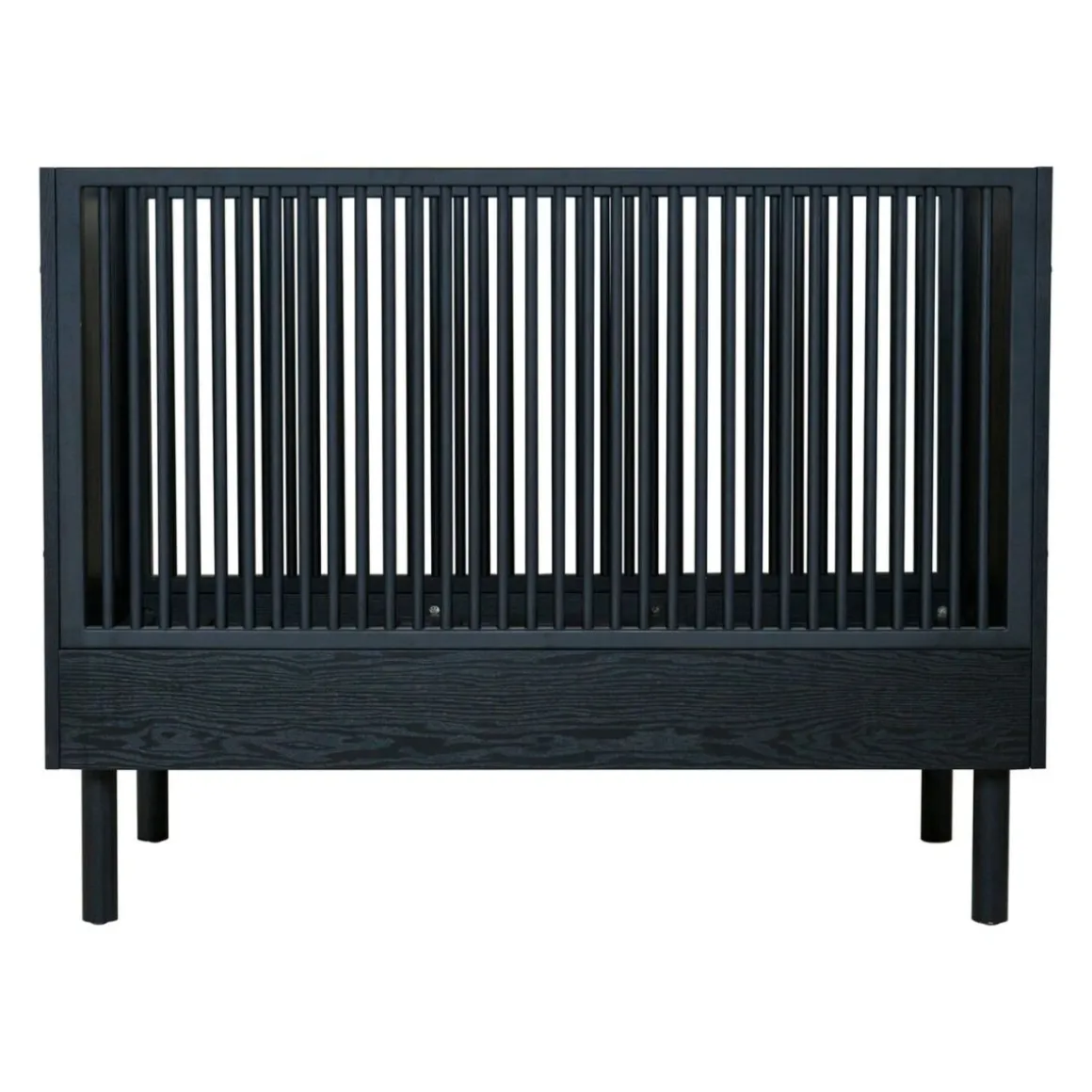 De Quax Babykamer Hai No Ki Black Ash is een complete babykamer, bestaande uit een ledikant, een commode en een kledingkast. De meubels zijn echte eyecatchers en zullen prachtig staan in iedere ruimte! De unieke dunne spijltjes van het ledikant komen terug in de commode en de kledingkast en zo zijn alle meubels mooi op elkaar afgestemd.