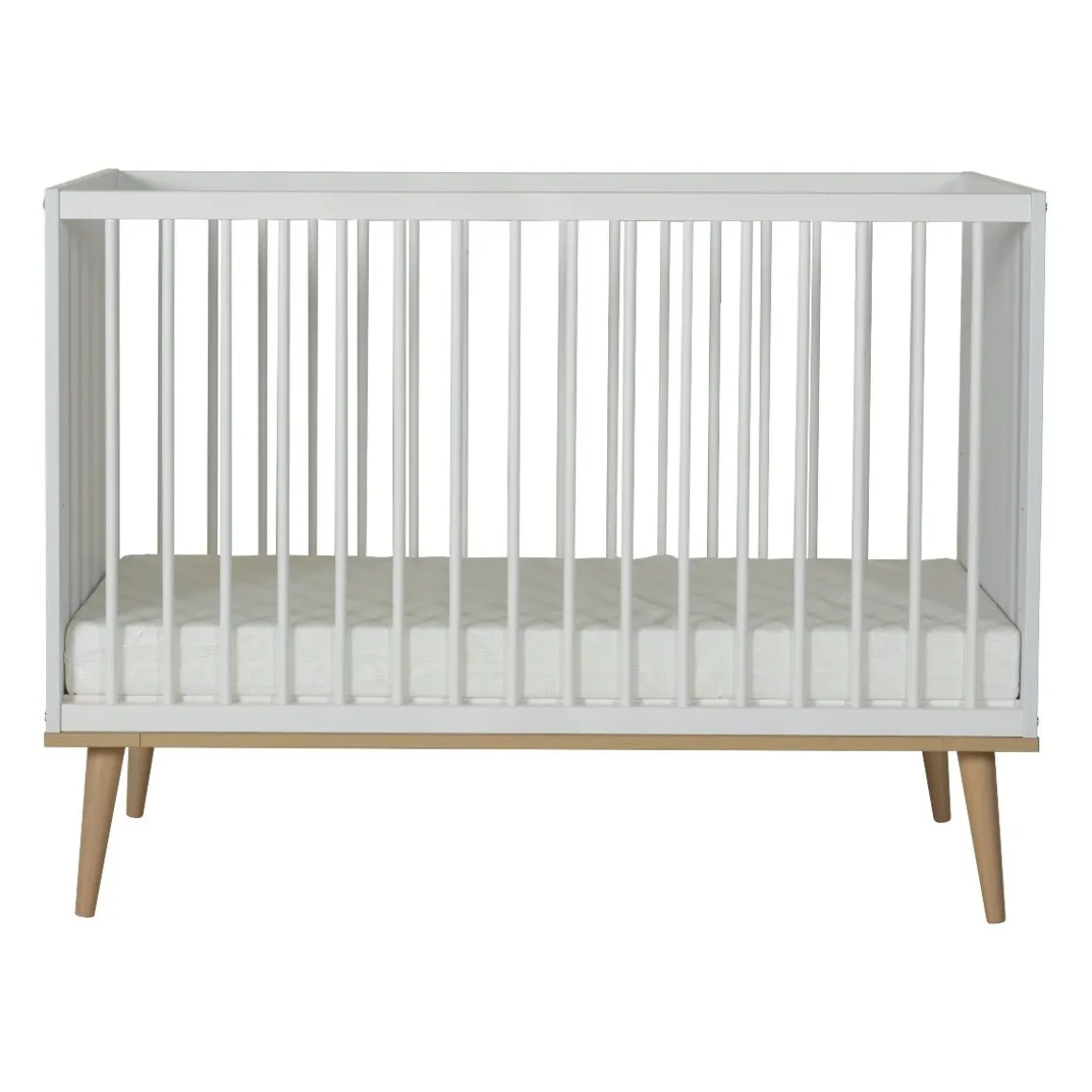 Het Quax ledikant Flow White & Oak is geschikt vanaf de geboorte en groeit mee met je kindje dankzij de in hoogte verstelbare bodem. De matrasmaat is 60 x 120 cm (matras is los verkrijgbaar).