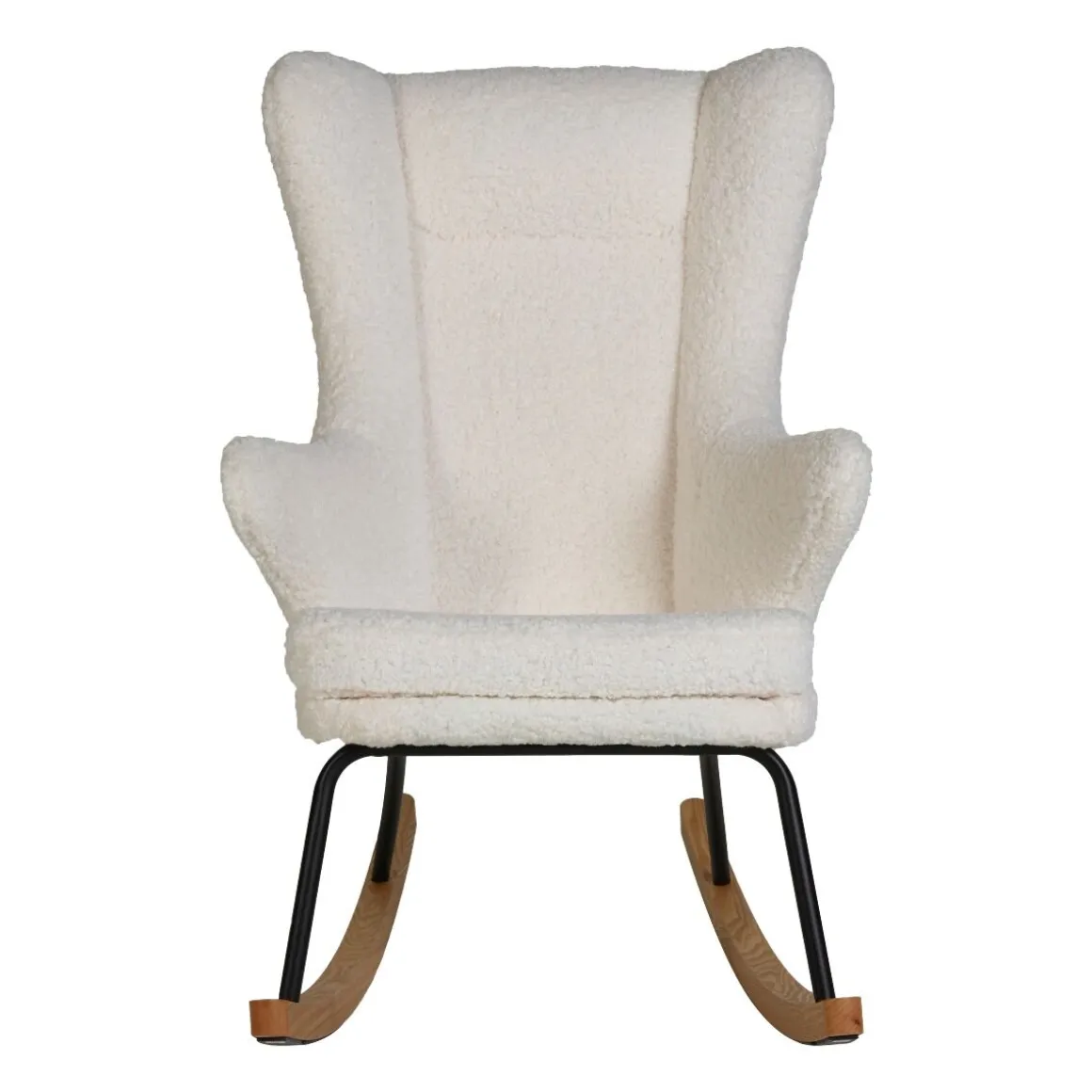 De Quax schommelstoel De Luxe Limited Edition is helemaal van nu dankzij de hippe teddy stof! Bovendien is het model van de schommelstoel vernieuwd.