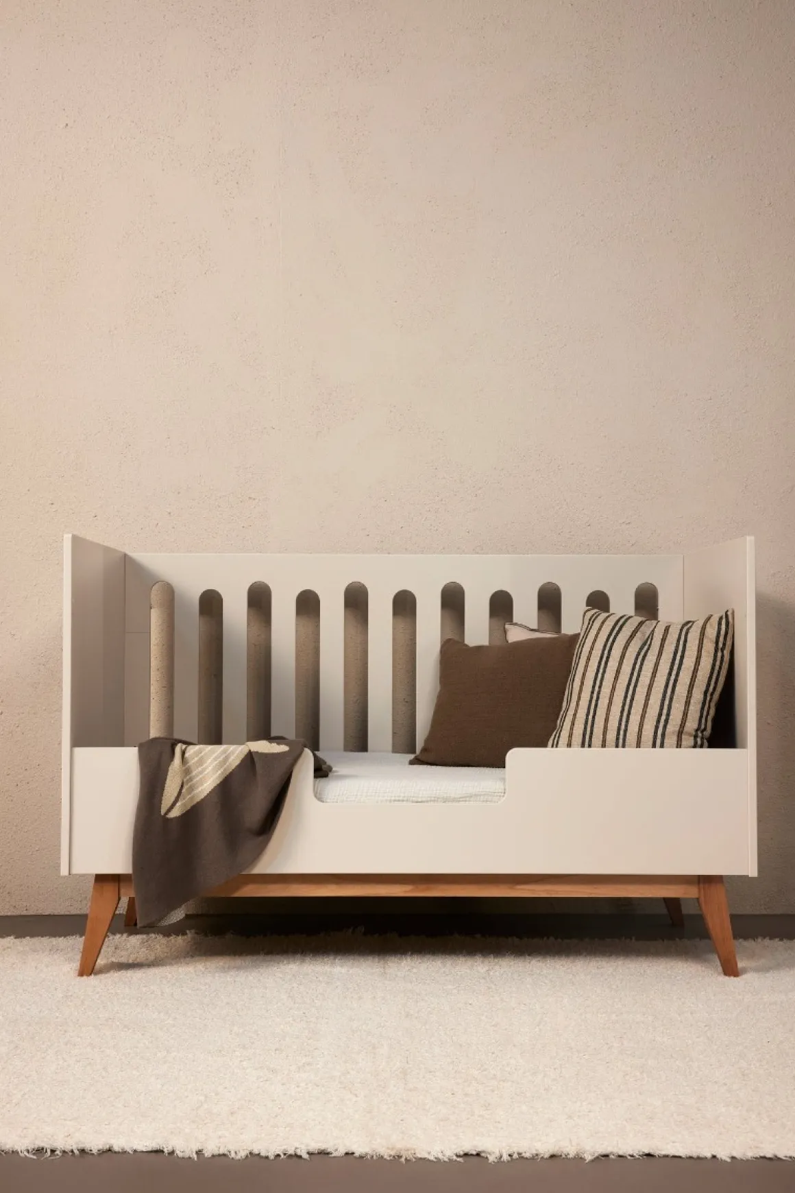 Naarmate je kleintje groter wordt, groeit het bedje met hem of haar mee. De zijkant van het ledikant kan worden verwijderd, waardoor het bedje transformeert in een peuterbed. Als het bedje zijn dienst als slaapplek heeft vervuld, tover je het eenvoudig om tot een gezellige zitbank. Perfect om samen boekjes te lezen of gewoon te relaxen.