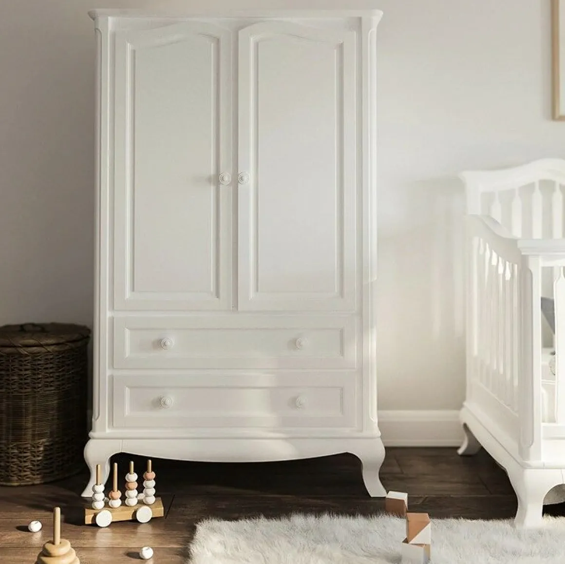 Romina Cleopatra Kledingkast Solid White is een duurzame kledingkast, gemaakt van massief hardhout. De kledingkast heeft een klassieke uitstraling en romantische uitstraling en is afgewerkt met sierlijke details. De kast zal prachtig staan in de babykamer, maar dankzij de uitstekende kwaliteit van het meubel zal je ook lang na de babytijd veel plezier beleven van de kast!