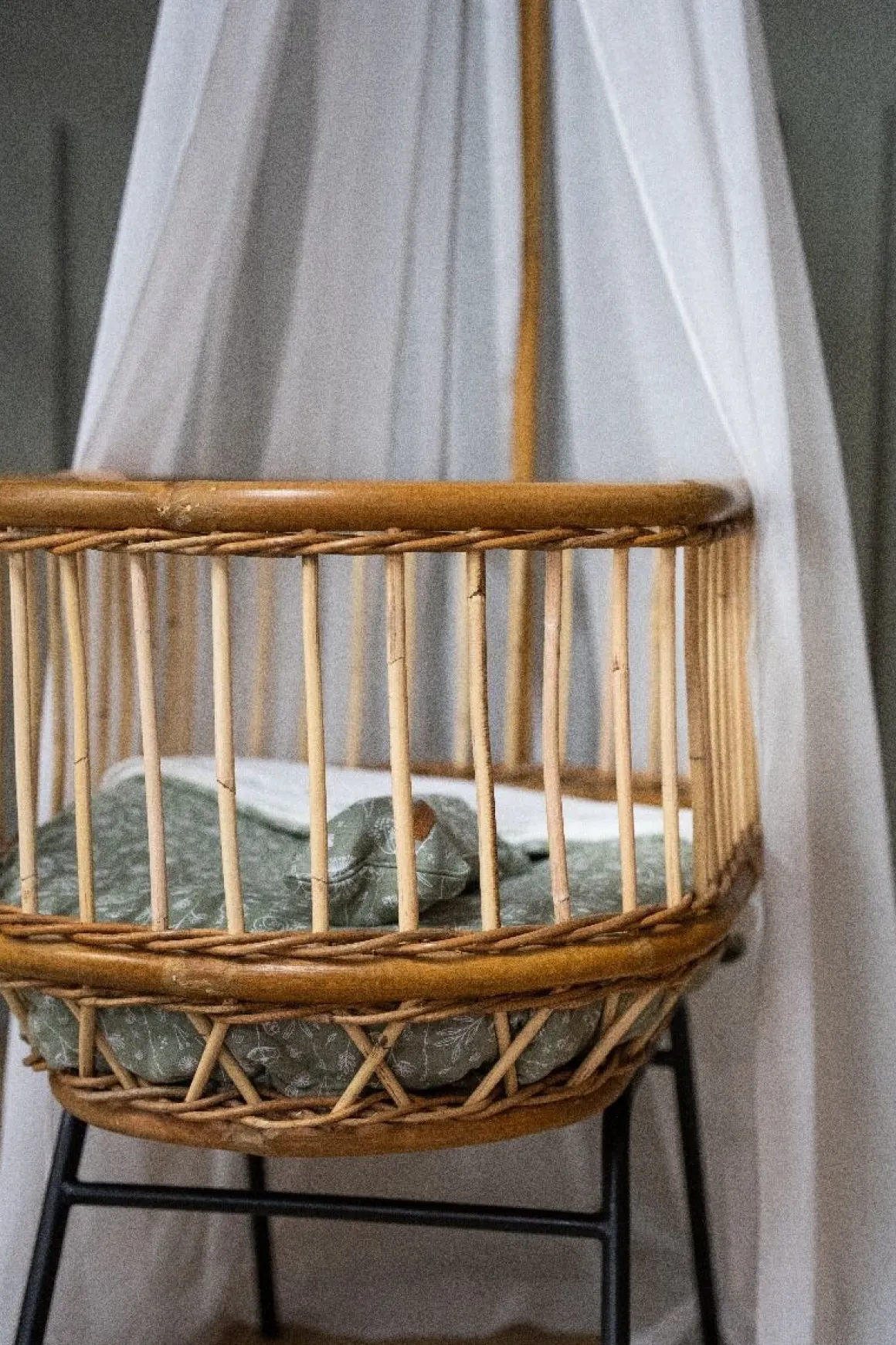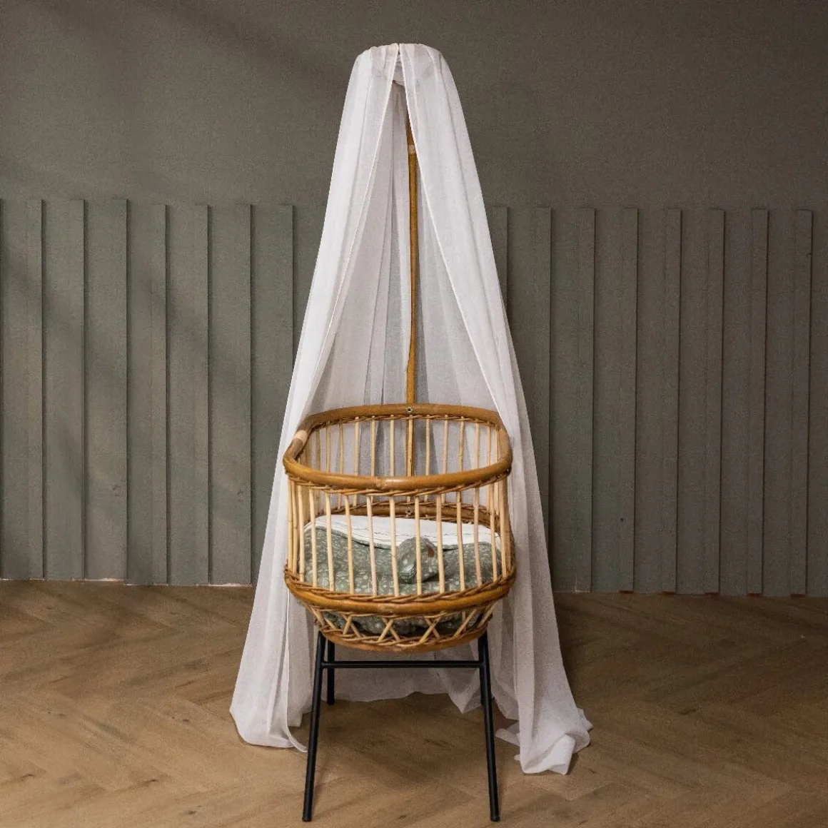 De rotan wieg Classic is gemaakt van naturel rotanstokken en is voorzien van een stoer zwart metalen onderstel. Het wiegje wordt standaard geleverd met hemelstandaard, maar kan ook zonder worden gebruikt.