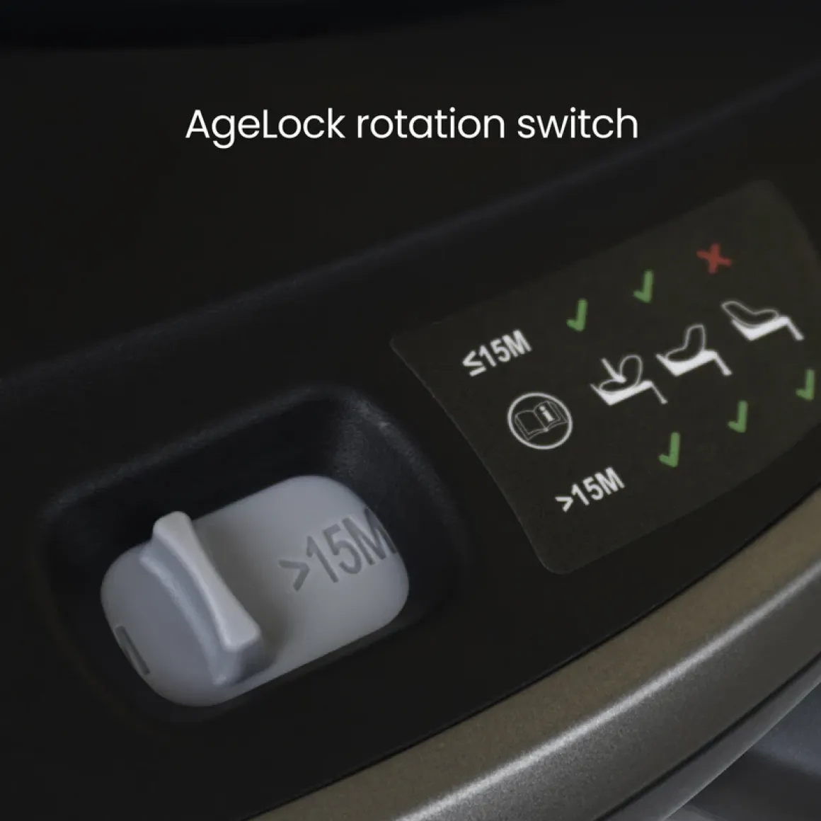 De Base Plus 360 is uitgerust met een AgeLock rotatieschakelaar, die ervoor zorgt dat je kindje zo lang mogelijk veilig achterwaarts gericht kan reizen. Achterwaarts vervoer wordt sterk aanbevolen voor jonge kinderen, omdat dit extra bescherming biedt bij een frontale botsing. Dankzij deze veiligheidsfunctie ben je er zeker van dat je kind op de meest veilige manier wordt vervoerd, afgestemd op zijn of haar leeftijd en groeifase.