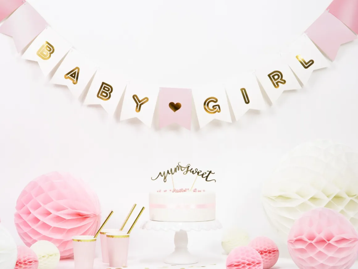 - Vlaggetjes met daarop de tekst BABY GIRL in goudkleurige letters