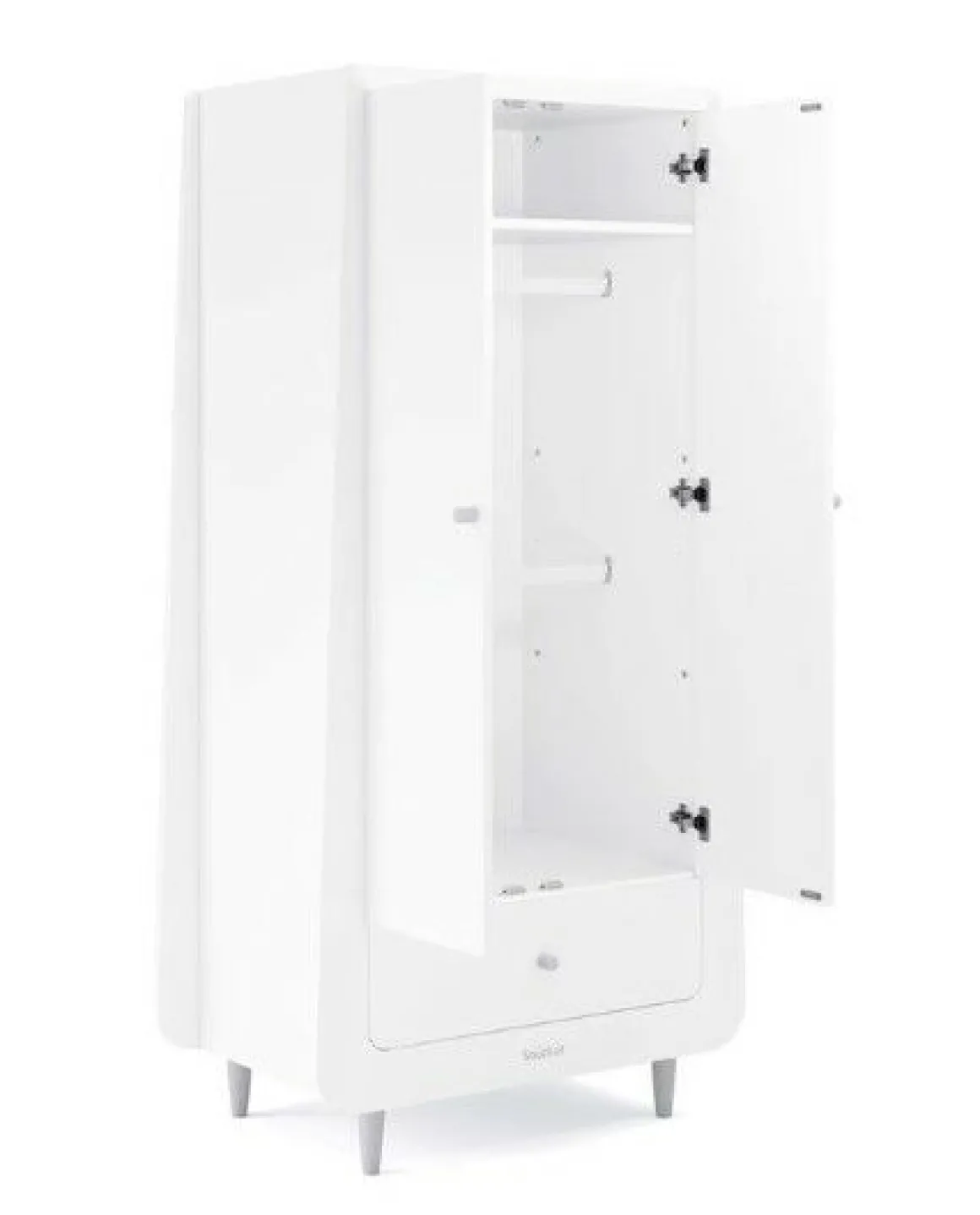 In de kledingkast kunnen alle kleertjes van je kleintje netjes en overzichtelijk worden opgeborgen. De 2-deurs kledingkast heeft een ruim hang- en leggedeelte en een ruime opberglade. De 2 hangroedes in de kledingkast zijn verstelbaar in hoogte en ook de legplank kan op jouw gewenste hoogte worden ingesteld.