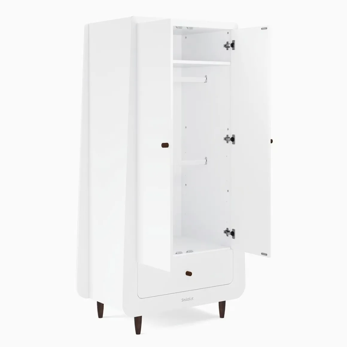 Bij de productie van de SnuzKot Skandi Kledingkast wordt geen gebruik gemaakt van MDF of fineer. In plaats daarvan is de kast gemaakt van massief hout en multiplex, wat bijdraagt aan de duurzaamheid en stevigheid van het meubelstuk. De afwerking met softclose deuren en lades zorgt niet alleen voor een stille werking, maar ook voor een langere levensduur. Dit betekent dat de kledingkast jarenlang meegaat, zelfs bij dagelijks gebruik.