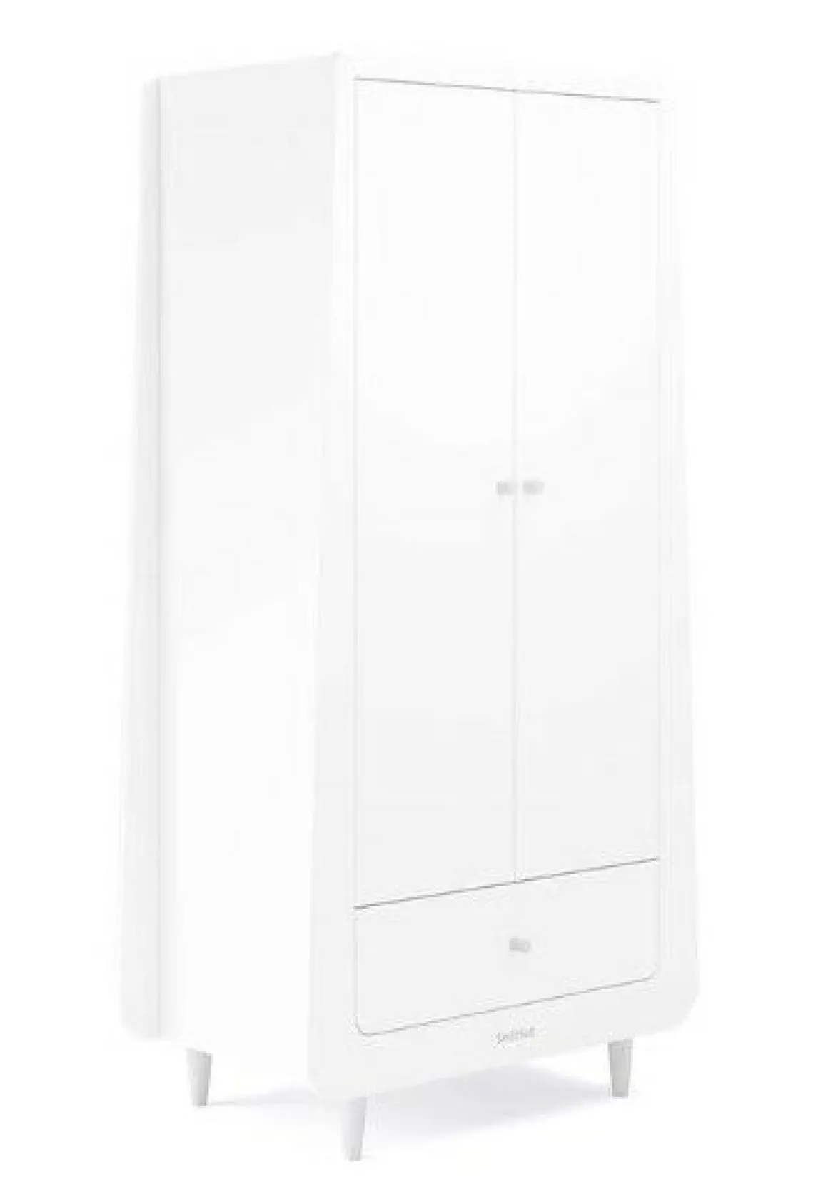 De SnuzKot Skandi Kledingkast White maakt de Snüz babykamer compleet! De kledingkast is lekker ruim en heeft een Scandinavische uitstraling. Achter de 2 kastdeuren bevindt zich een ruim hang- en leggedeelte zodat je alle kleertjes netjes en overzichtelijk kan opbergen. De kast heeft 2 hangroedes die kunnen worden ingesteld op een hoogte naar eigen wens en een legplank die ook verstelbaar is in hoogte. Onderin de kast zit een ruime lade waar wat extra spulletjes in kunnen worden opgeborgen.