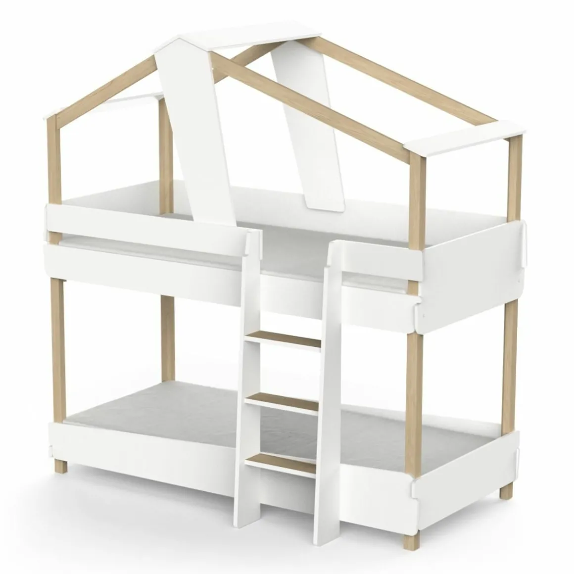 Stapelbed Timber brengt de fantasie van een boomhut naar de slaapkamer. Dit unieke stapelbed creƫert een avontuurlijke en gezellige sfeer waar kinderen dol op zijn. Het dak van het bed voegt een speelse uitstraling toe en kan eenvoudig worden aangekleed met vlaggetjes, lampjes of andere decoraties. Zo maak je het bed helemaal uniek en afgestemd op de persoonlijke smaak van je kind.