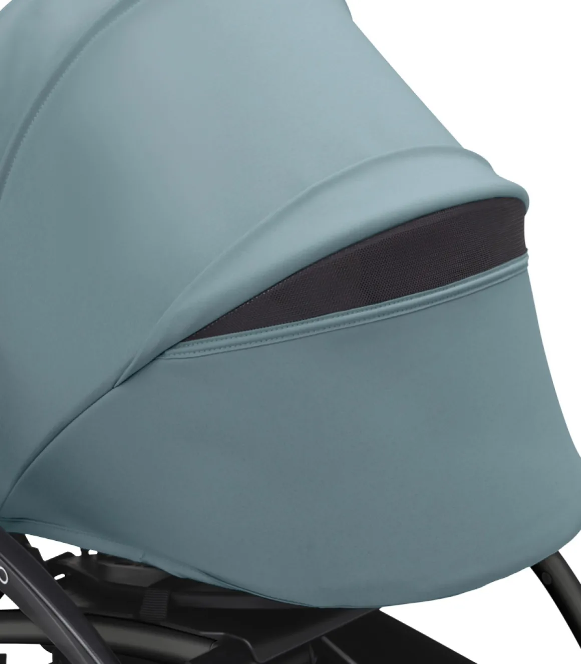 Het YOYO® 0+ Newborn Pack is uitgerust met een vijfpunts-veiligheidstuigje, wat ervoor zorgt dat je kindje stevig en veilig vast zit tijdens elke wandeling. De uittrekbare zonnekap met UV-bescherming (UPF 50+) beschermt je kindje tegen de zon, terwijl het sluitbare ventilatievenster zorgt voor een aangename luchtcirculatie, ook op warme dagen.
