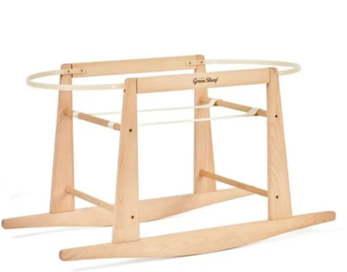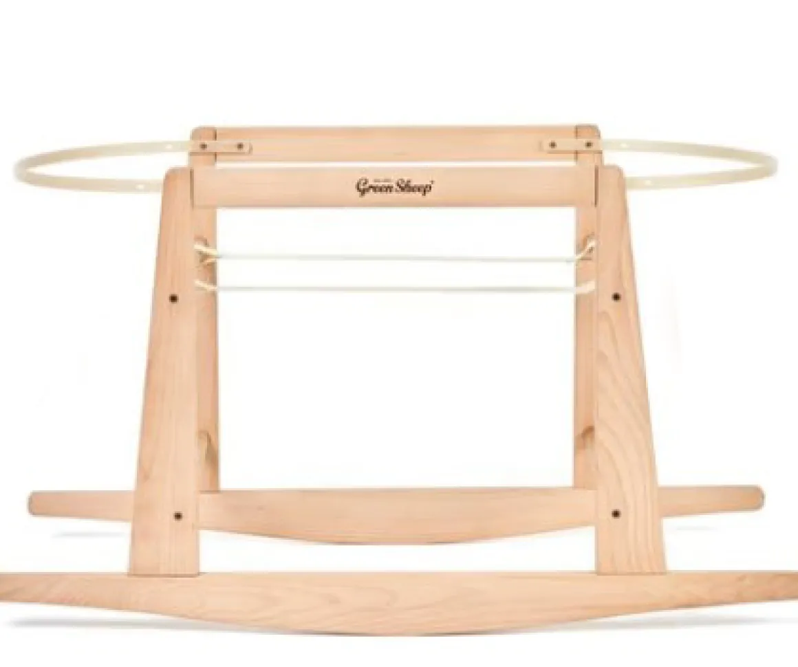 - Schommelende houten standaard voor The Little green Sheep mozesmand