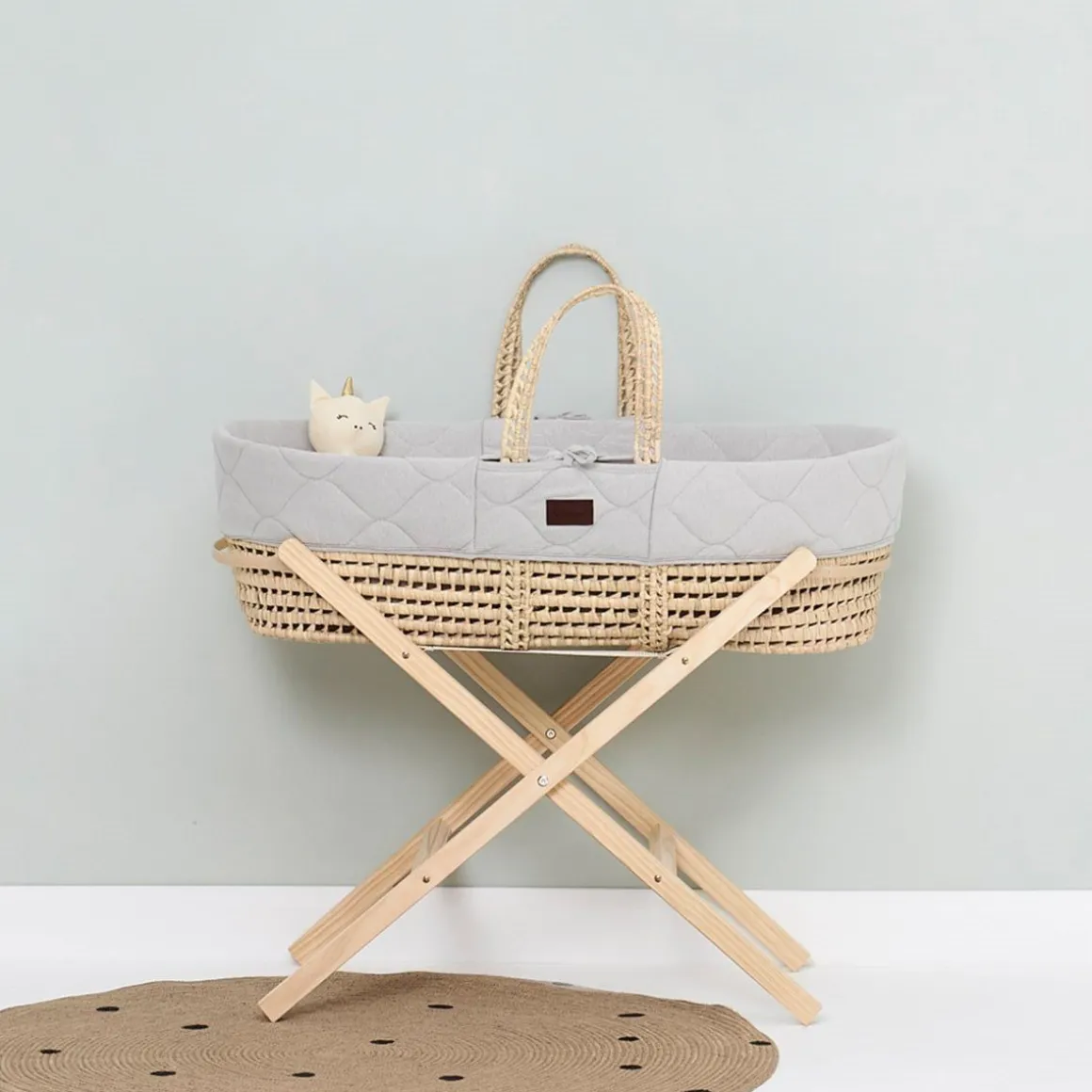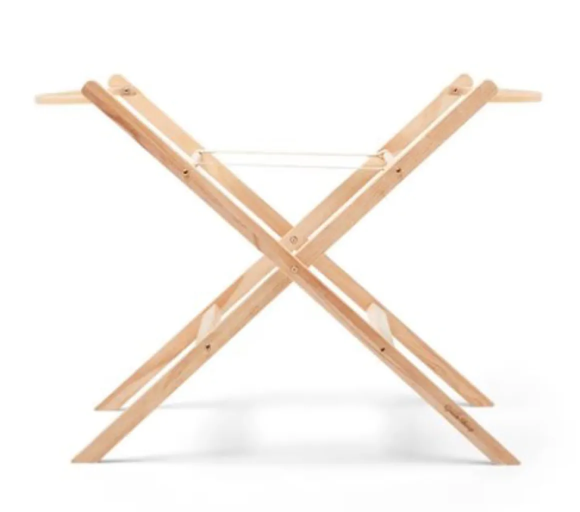 De standaard voor de mozesmand is gemaakt van beukenhout en is stevig en duurzaam. De standaard is inklapbaar, dus wanneer hij even niet gebruikt wordt kan hij gemakkelijk worden opgeborgen! Ook neem je hem hierdoor heel makkelijk mee. De houten steunbalkjes aan de zijkanten zorgen ervoor dat de mozesmand stevig op de standaard staat.