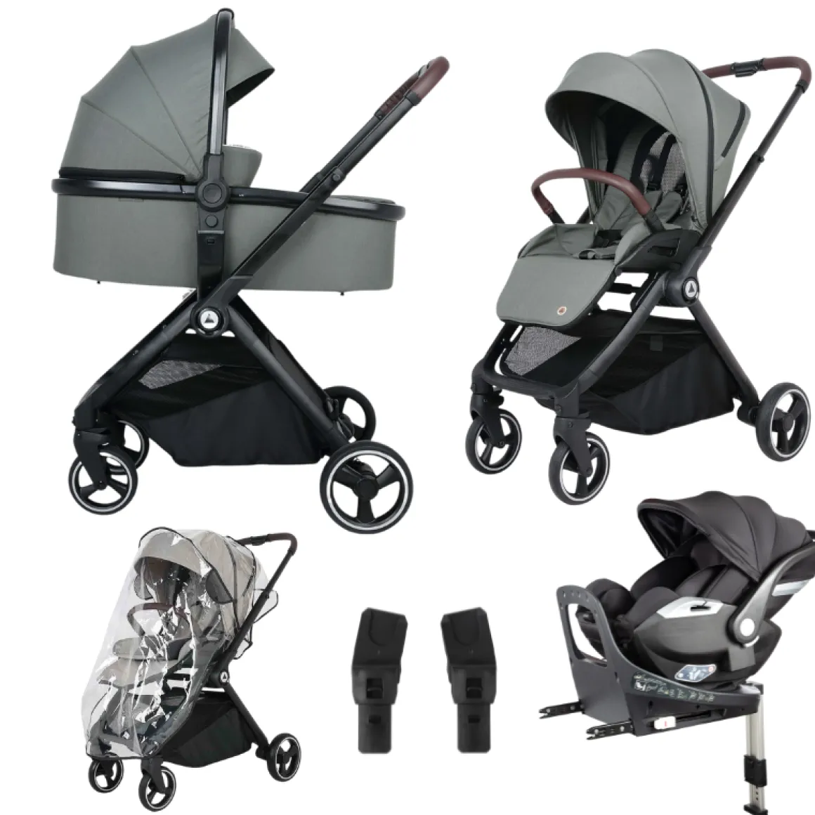 - Complete 3-in-1 kinderwagen met reiswieg, omkeerbare zitting, regenhoes en I-Size autostoel