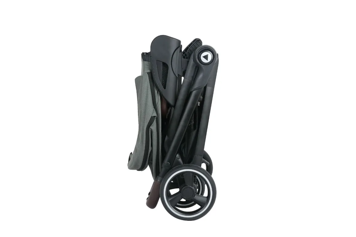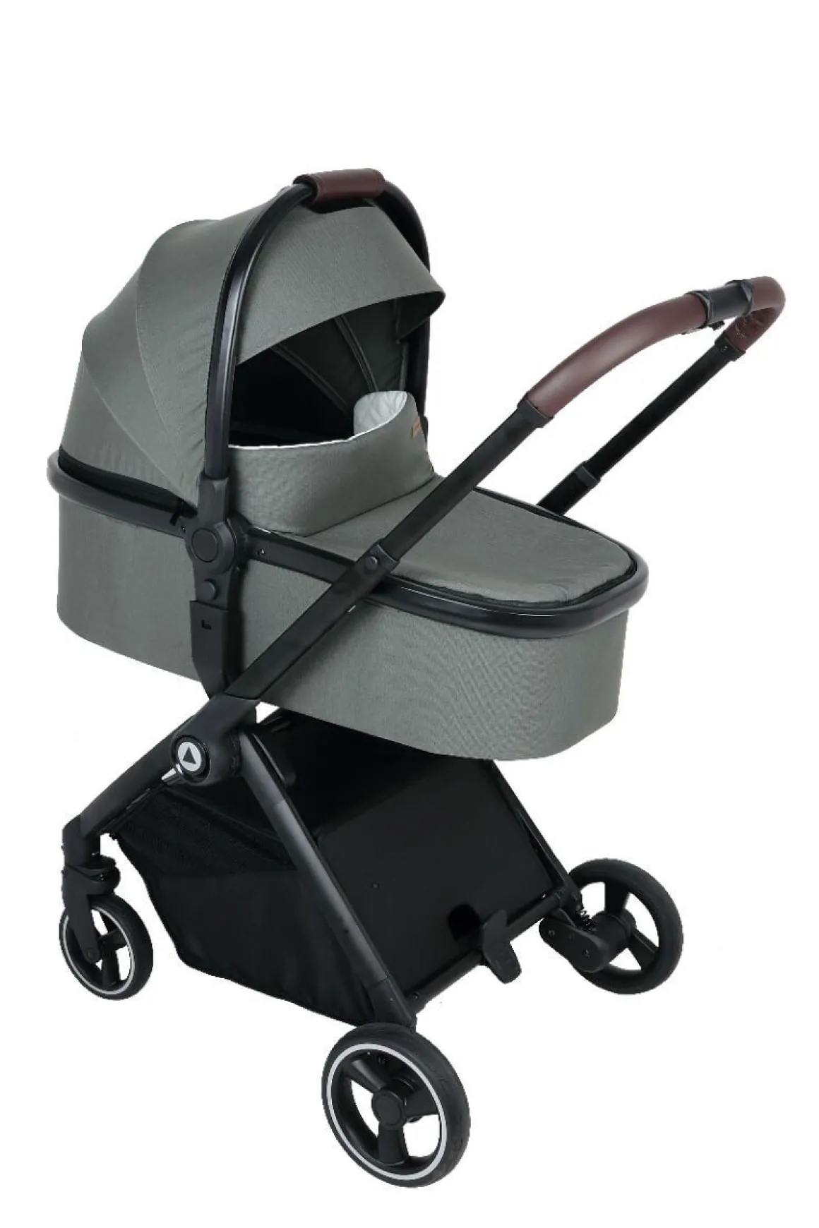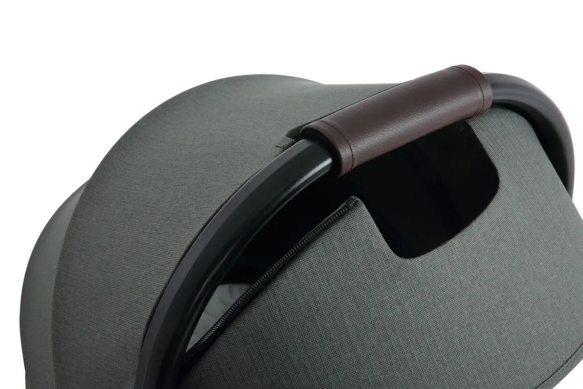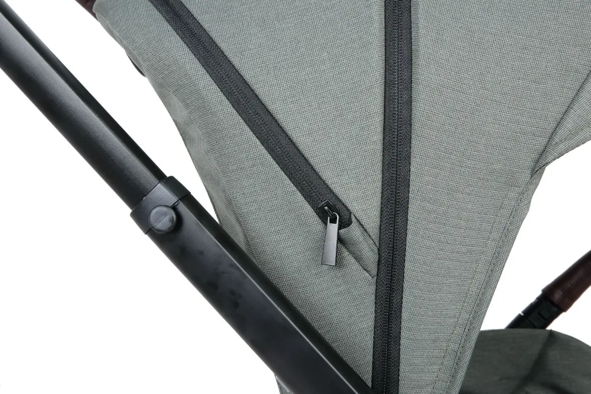 Het zwarte lichtgewicht aluminium frame geeft deze kinderwagen een eigentijdse uitstraling. De kunstlederen afwerking op de duwstang en veiligheidsbeugel voegt een luxe geveol toe. Deze combinatie van stijl en duurzaamheid maakt de Diaz een aantrekkelijke keuze voor ouders die functionaliteit willen combineren met een moderne look.