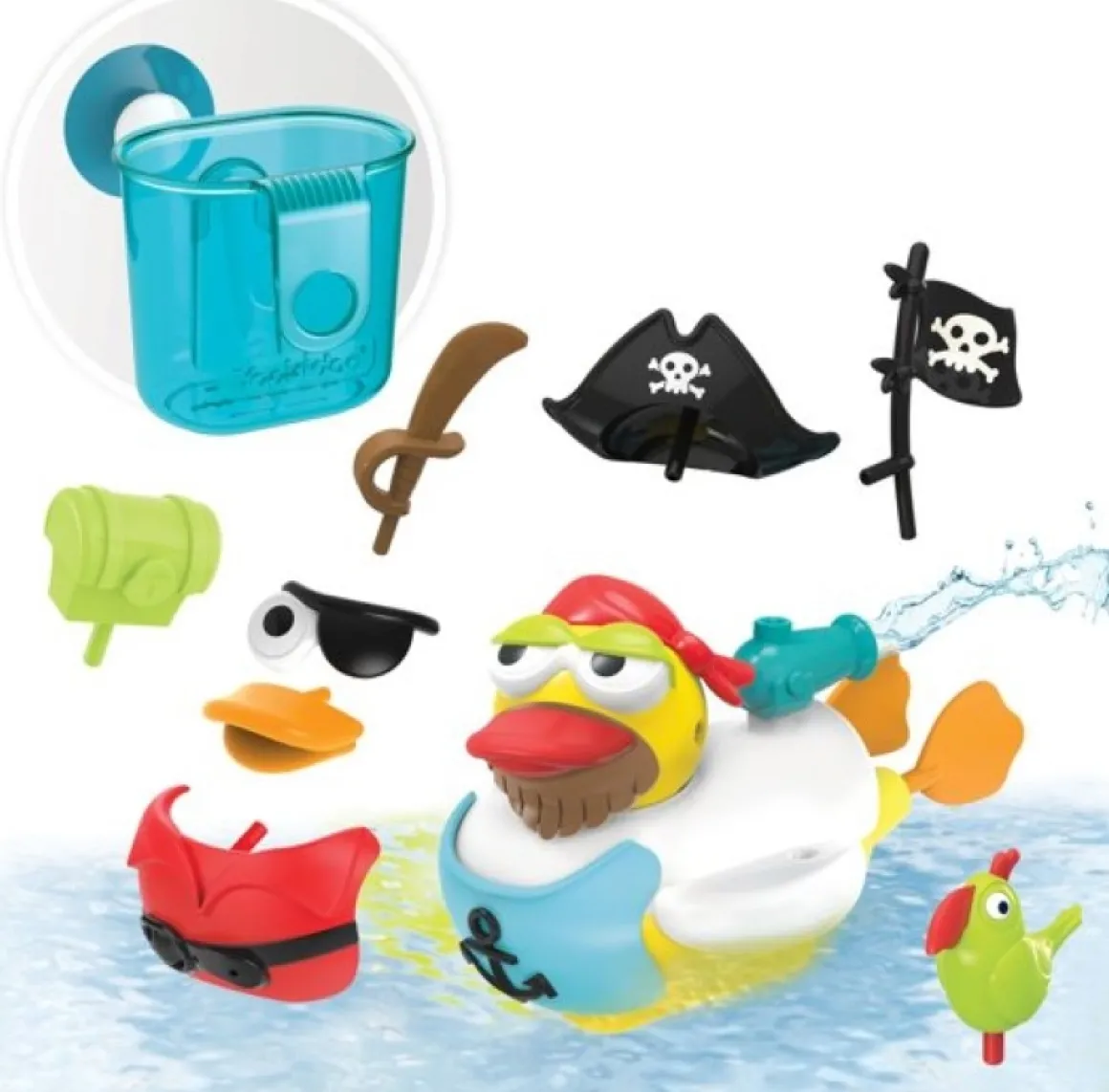 Geleverd met een speciale houder, biedt de Jet Duck Create A Pirate een handige opbergoplossing voor alle accessoires. Zo blijft de badspeelset georganiseerd en klaar voor het volgende avontuur.