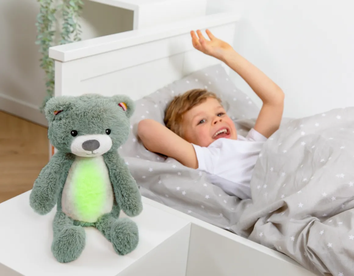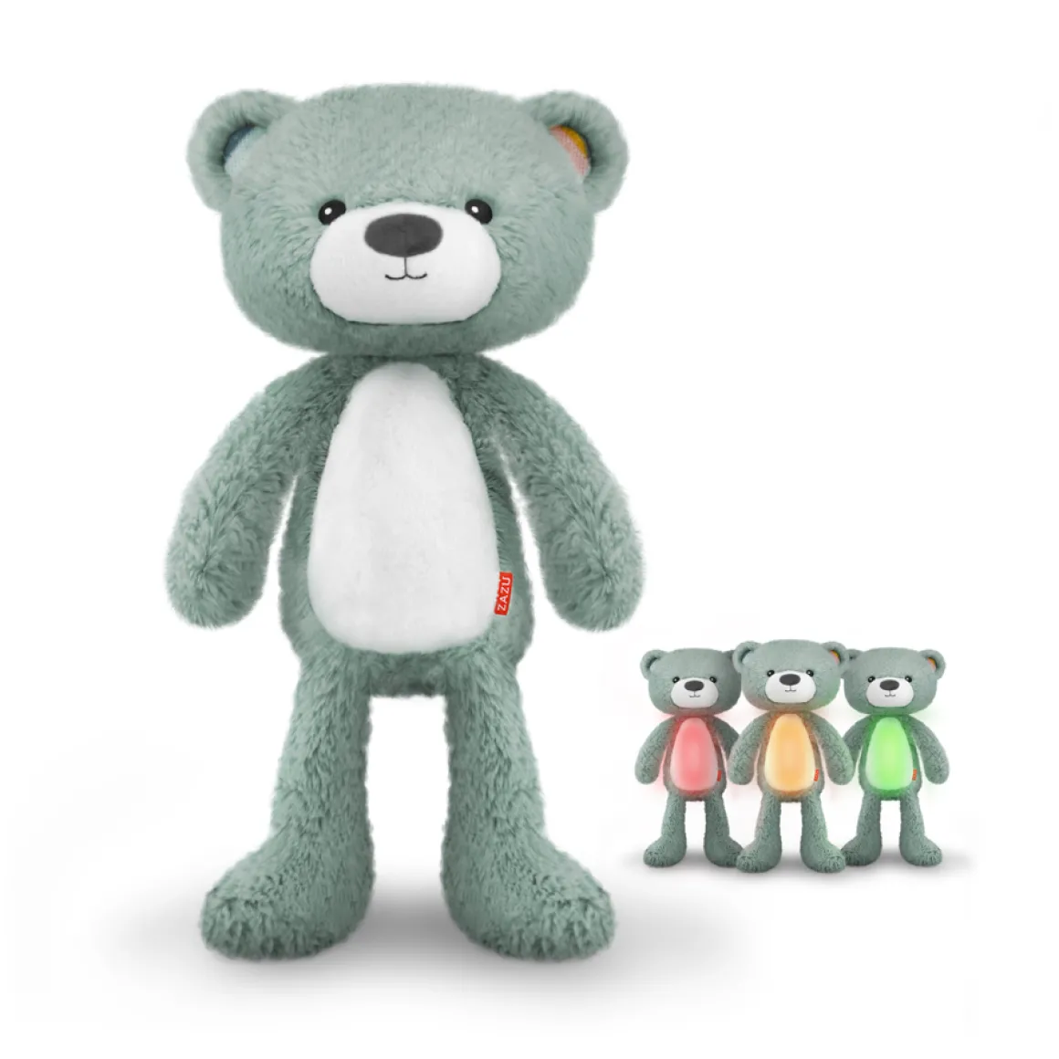 De ZAZU Slaaptrainer Beer Brody is ontworpen om je kleintje te helpen ’s avonds in slaap te vallen en hen gerust te stellen gedurende de nacht. Deze schattige beer biedt niet alleen een rustgevend nachtlampje, maar speelt ook kalmerende liedjes af om je kind te helpen ontspannen voor het slapengaan. Met Brody’s intuïtieve lichtsysteem leert je kind wanneer het tijd is om te slapen en wanneer het veilig is om op te staan. Dit wordt aangeduid door een veranderend kleurenschema: rood voor nacht, oranje voor vroege ochtend en groen voor “OK om op te staan”.